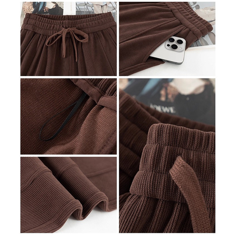小个子加厚保暖休闲运动裤 咖色加绒阔腿裤 女秋冬美拉德复古直筒裤