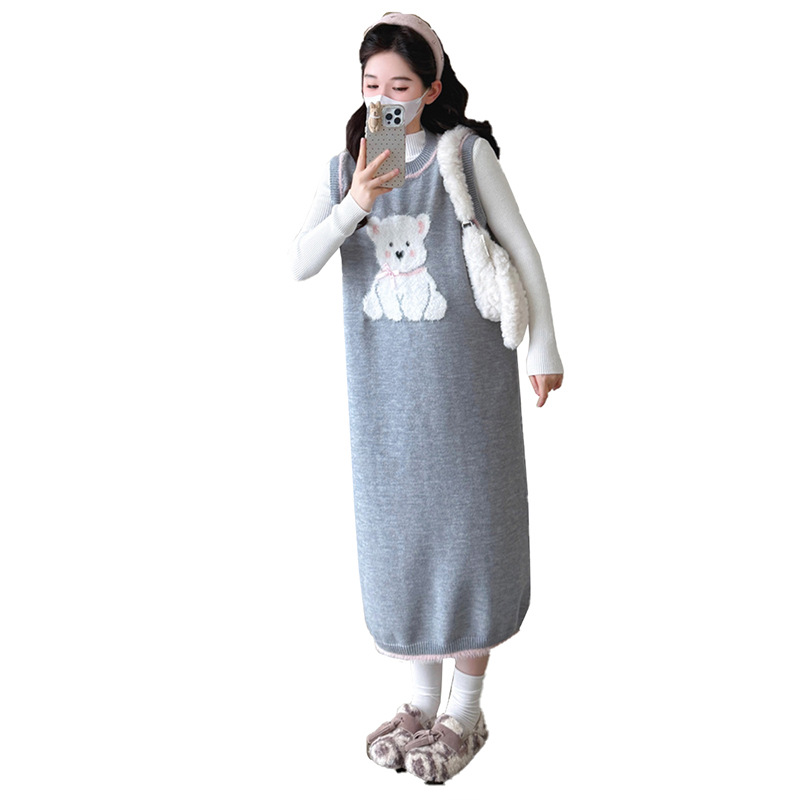 针织毛衣马甲裙长袖 2025秋冬新款 潮妈长款 时尚 打底上衣 韩版