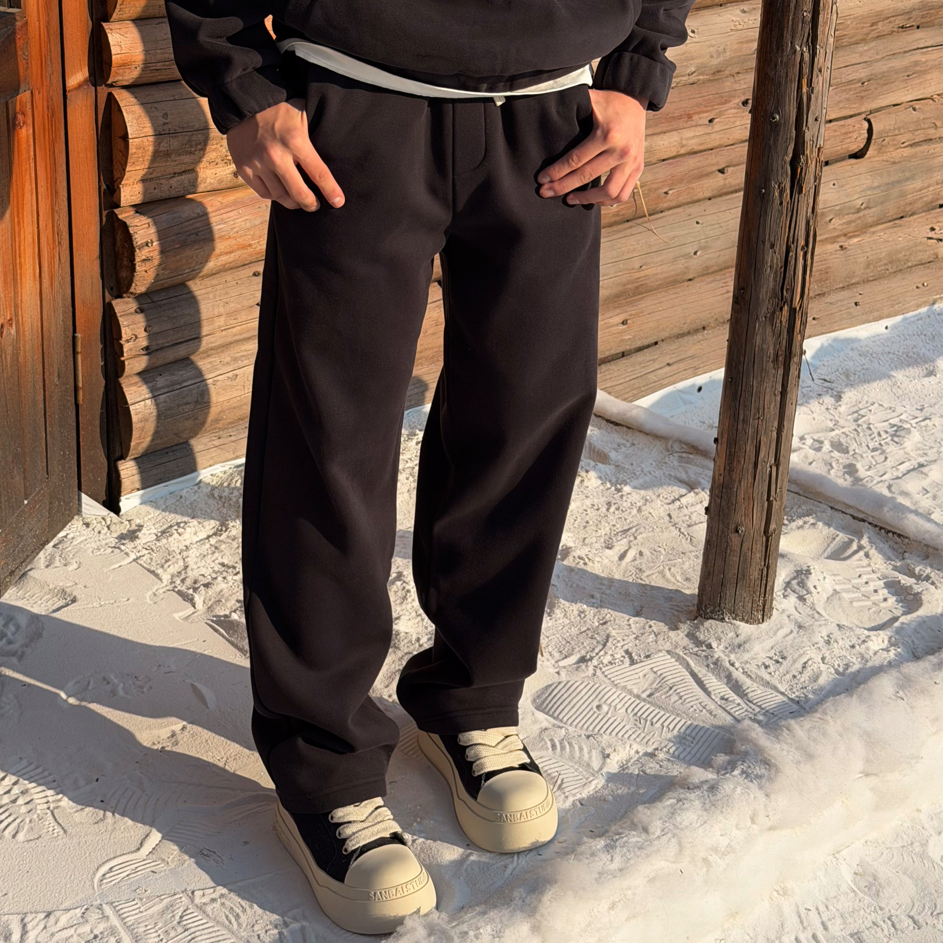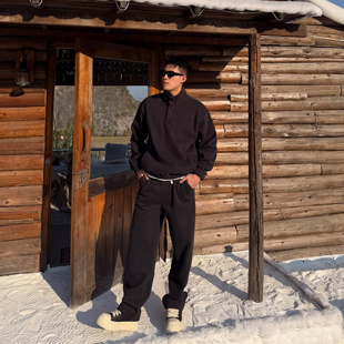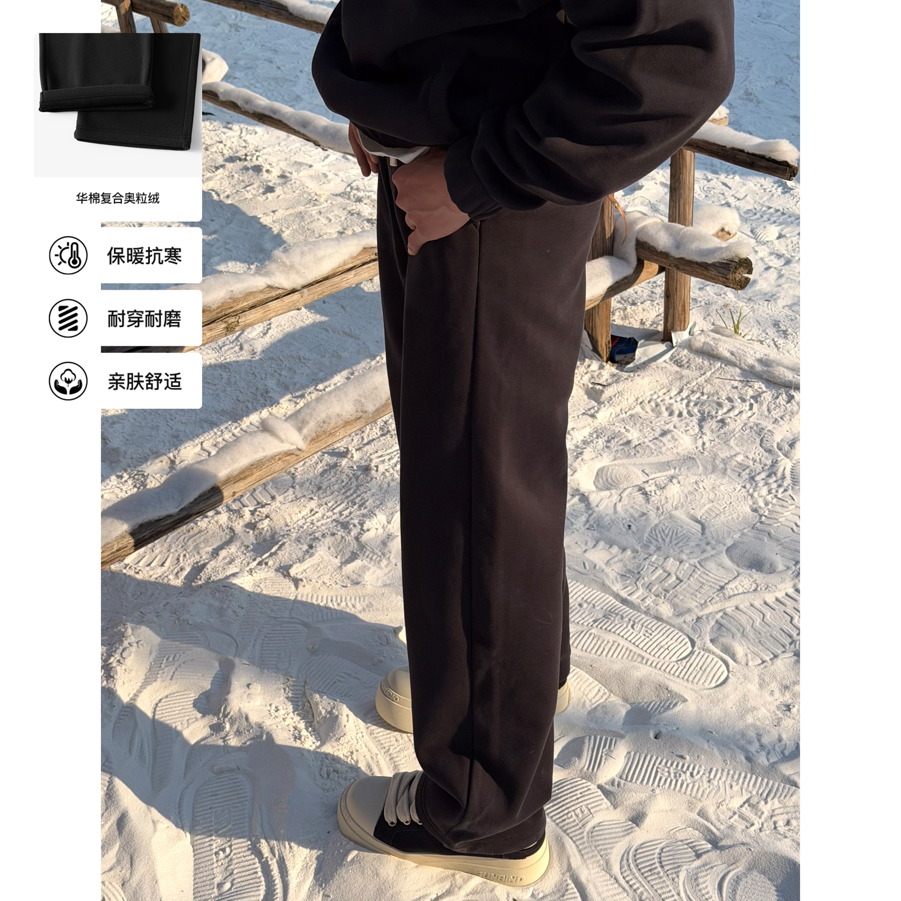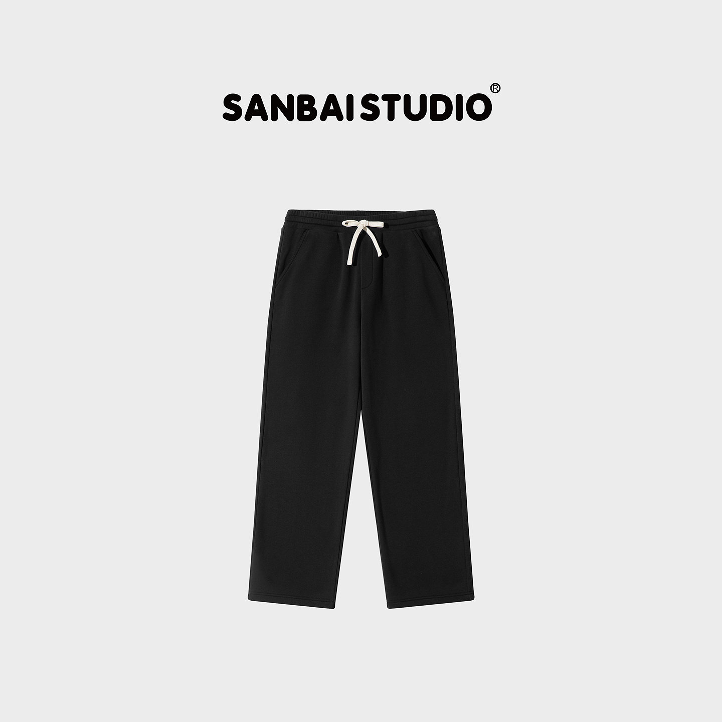 百搭休闲裤 SANBAI 黑色秋冬加厚加绒直筒卫裤 重磅奥粒绒 叁佰