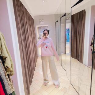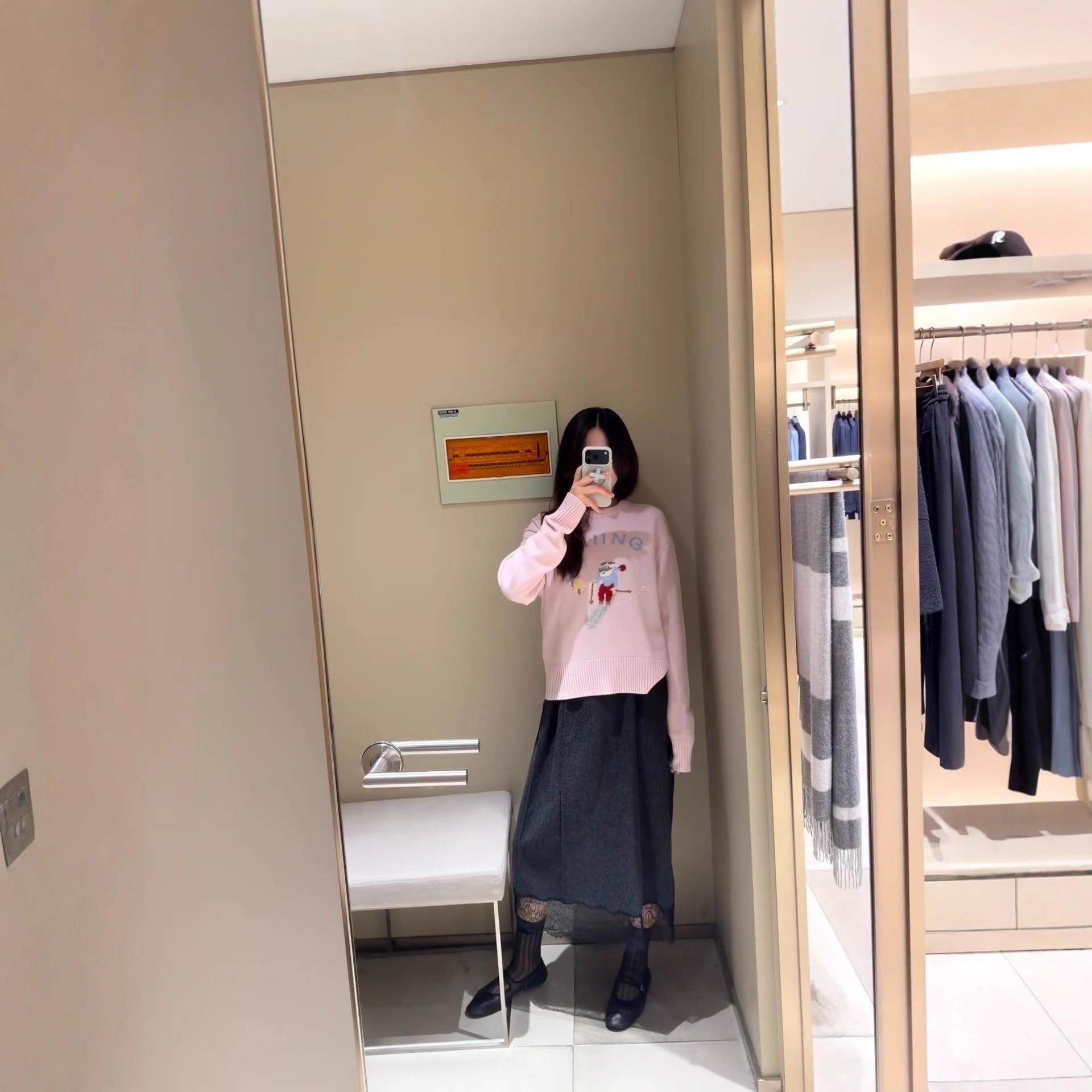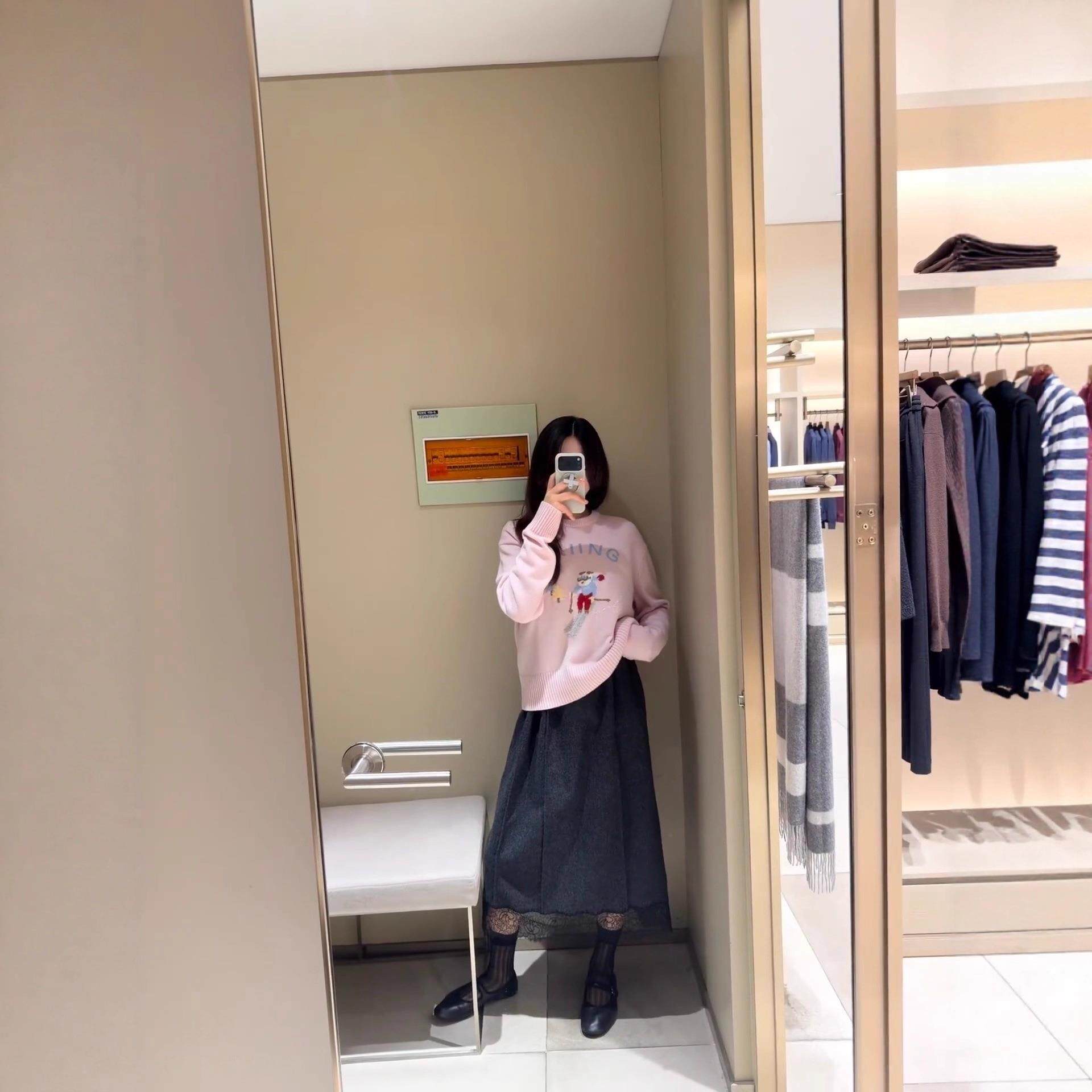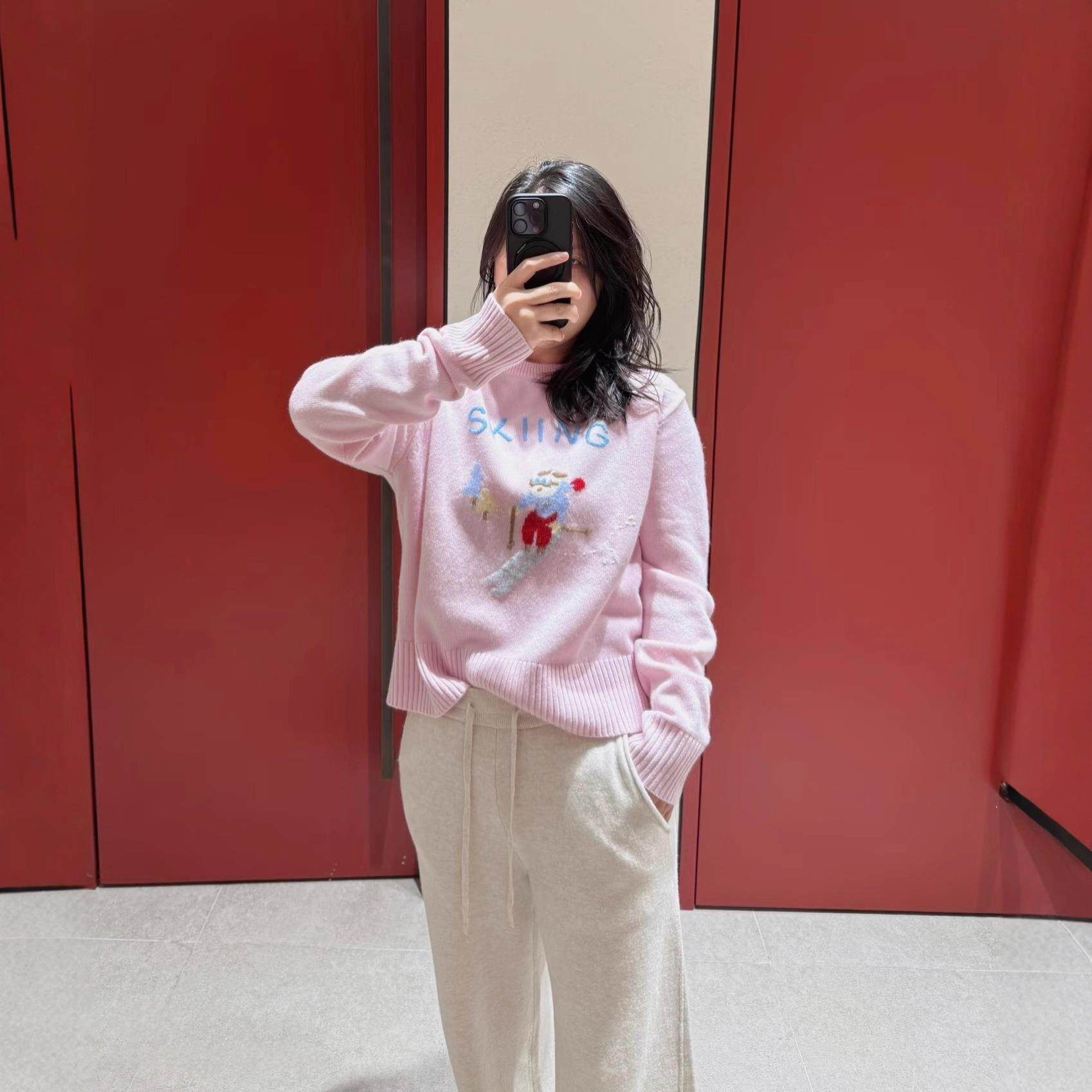 滑雪小人提花长袖 forest圆领绣嵌休闲针织衫 甜美毛衣 orange