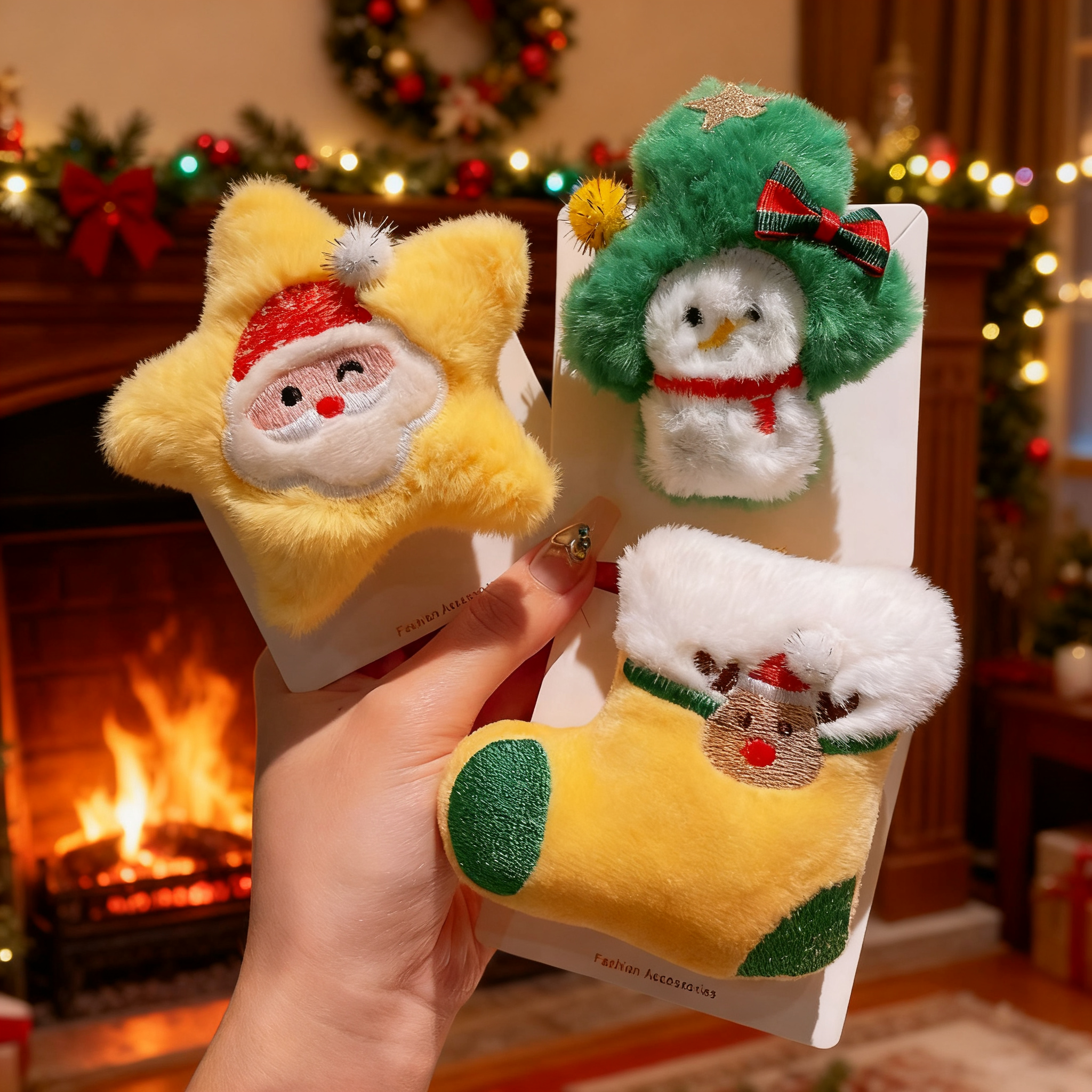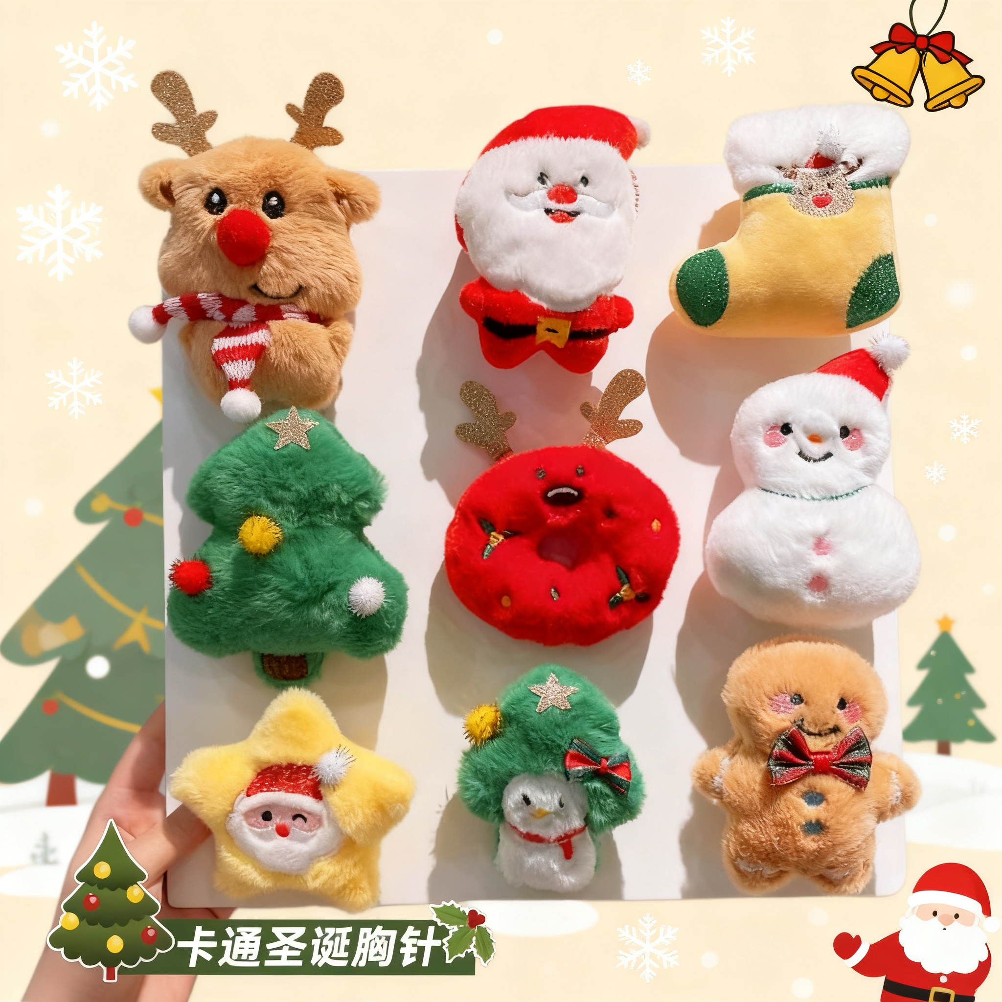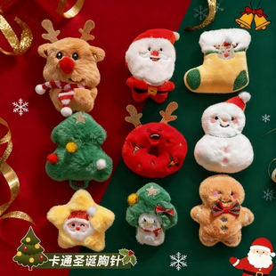 圣诞节儿童小礼品礼物可爱卡通毛绒圣诞老人胸针毛衣围巾别针装 饰