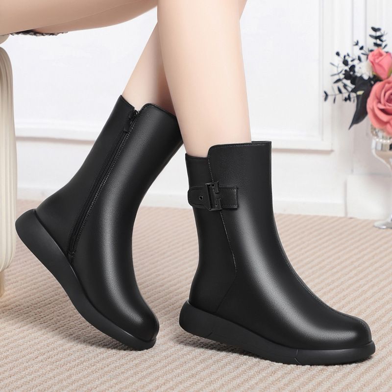 增高厚底马丁靴女2025秋冬新款 小个子英伦风烟筒靴加绒切尔西短靴