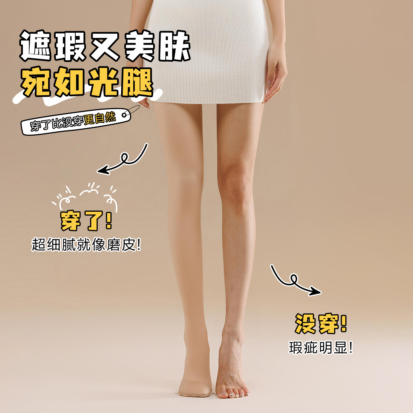 袜超自然 连裤 光腿神器女九分肉色丝袜打底裤 一体水光袜秋冬加厚款