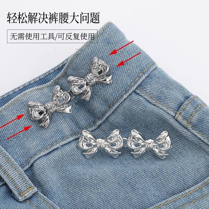 收腰扣对扣双蝴h蝶结可拆卸免钉免缝收腰纽扣子腰围大改小收腰神
