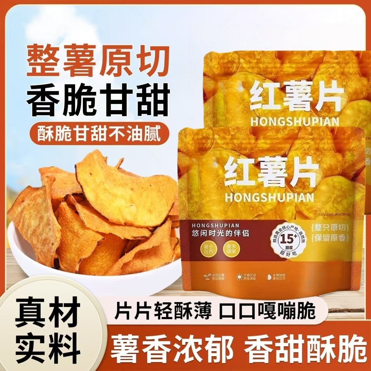 500g甘甜酥脆红薯番薯片地瓜片香甜零食宝宝孕妇可吃红薯片红薯干