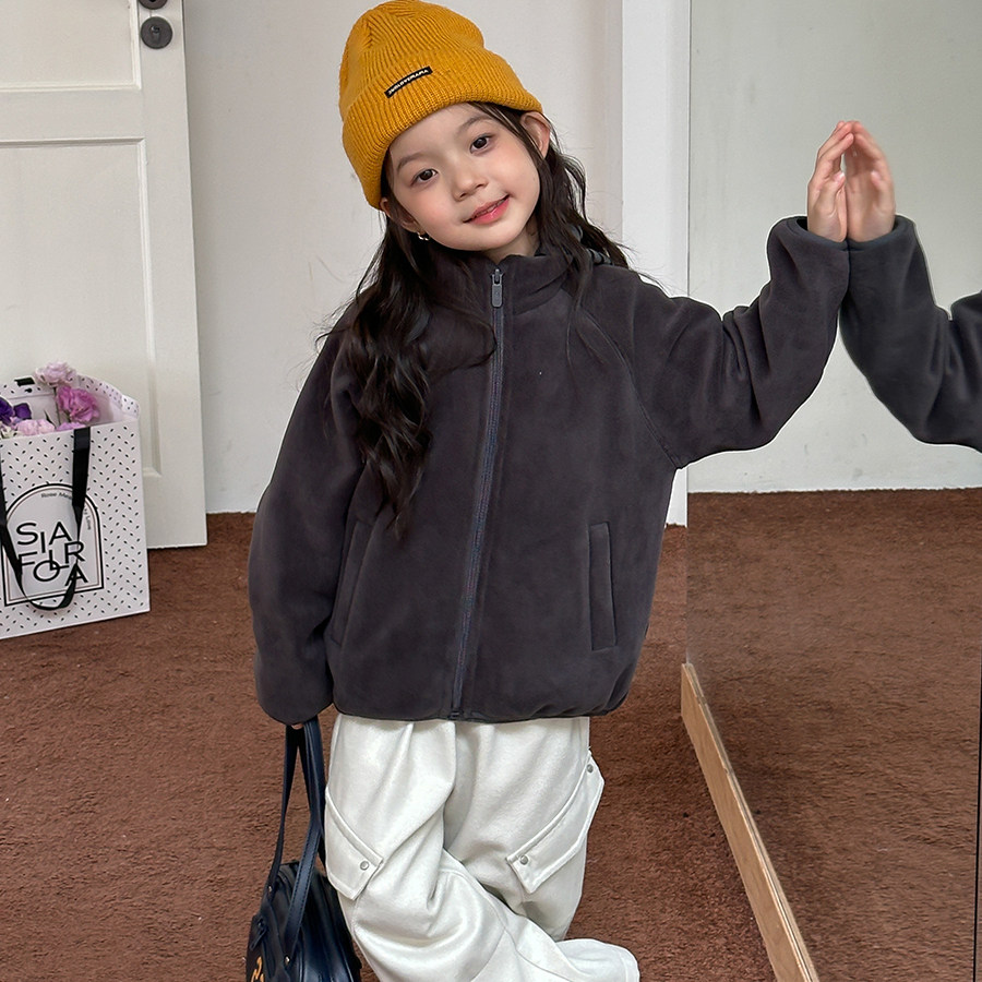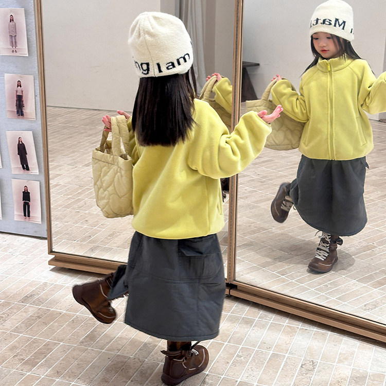 依依妈女童冬装 内搭外穿防风保暖棉服儿童奥粒绒加厚双面毛绒外套