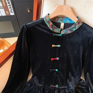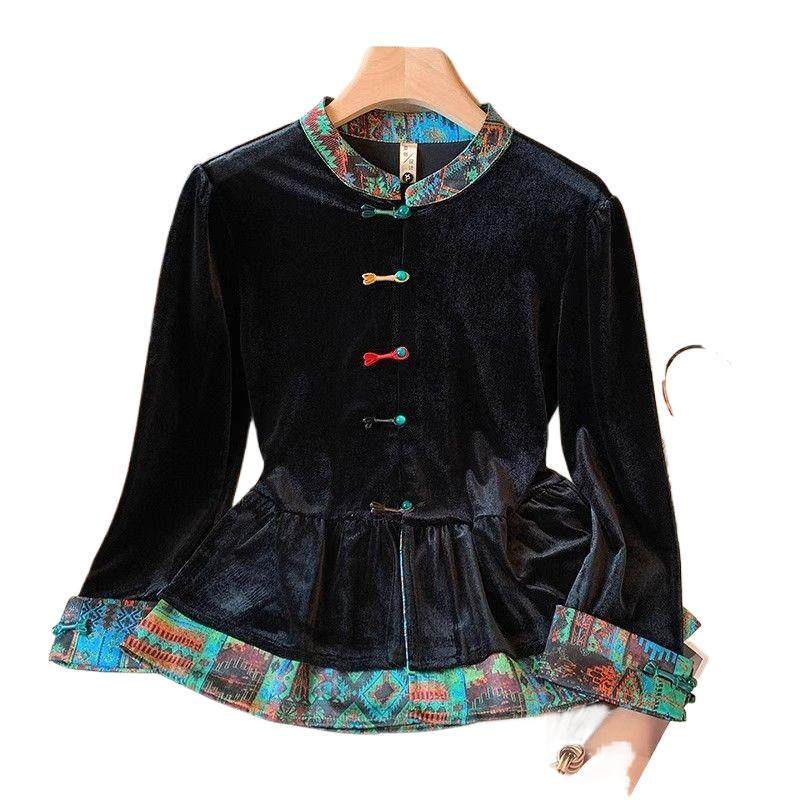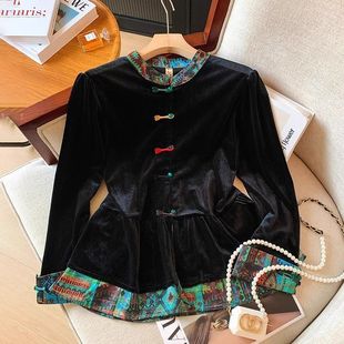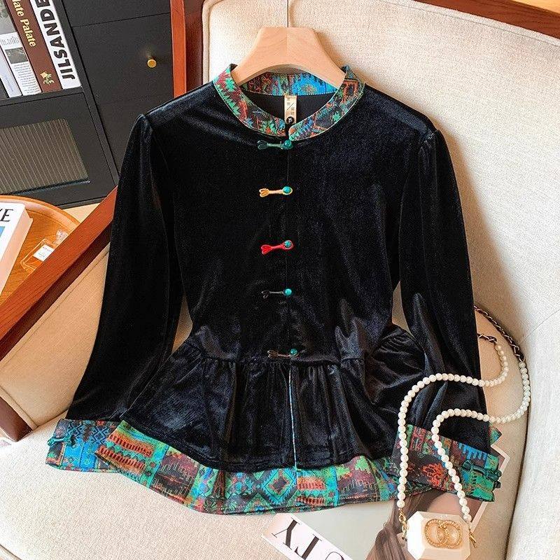 女秋冬轻奢高级感衬衣收腰显瘦上衣 复古V领丝绒衬衫 MULVAN 法式