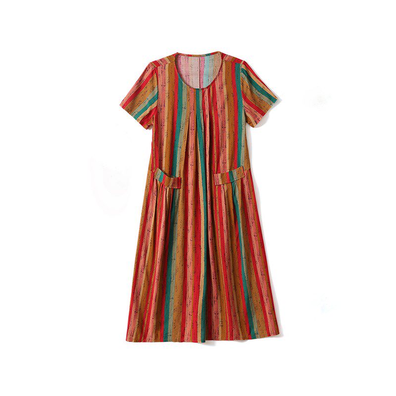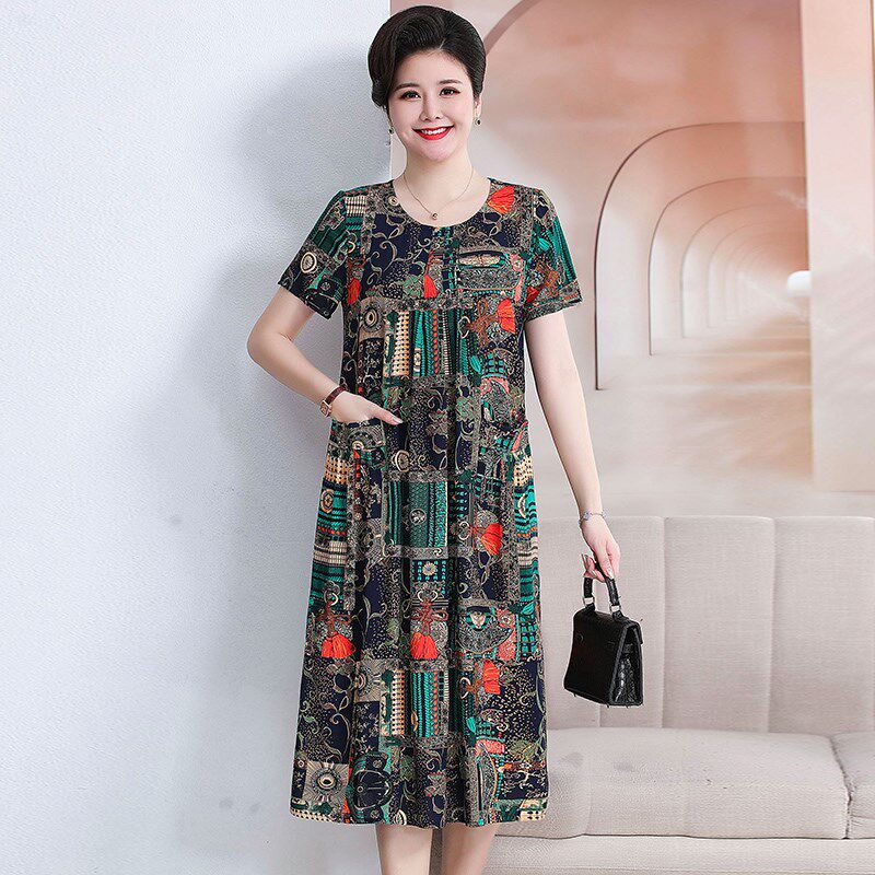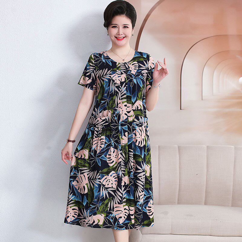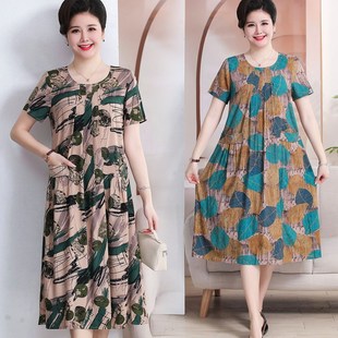 中老年女装 宽松胖妈妈装 夏装 加肥大V码 棉绸连衣裙200斤中长款 新品