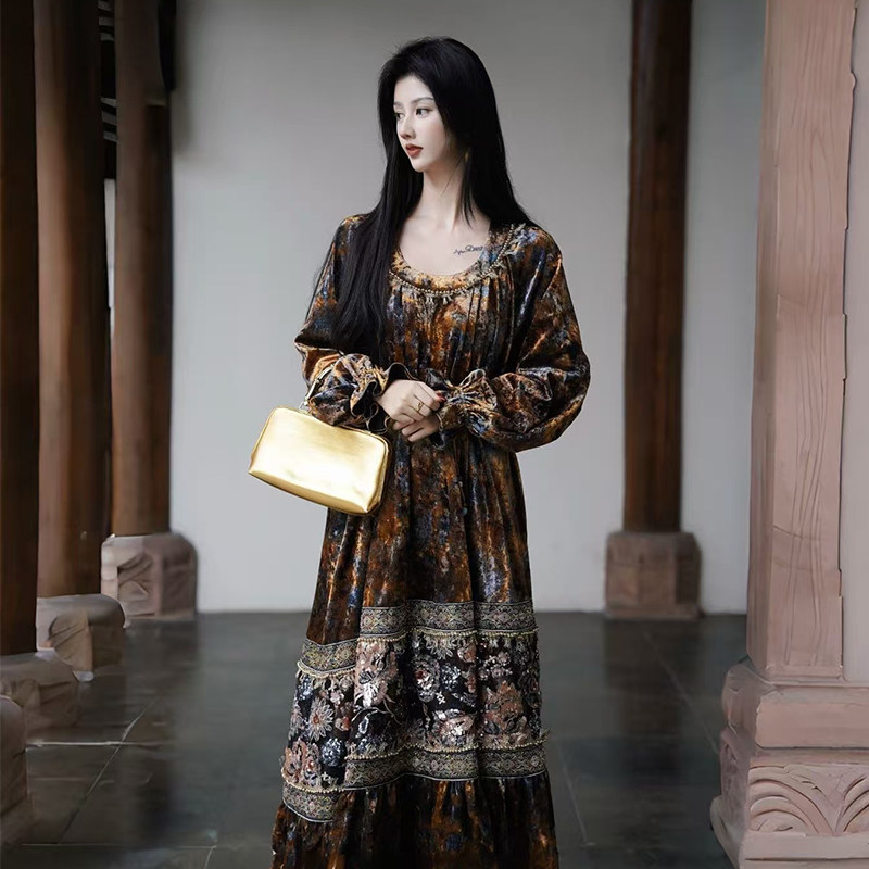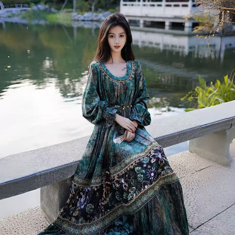 礼服级两色超重工丝绒珠片刺绣连衣裙 新中式 澄渔高定 麟羽惊鸿
