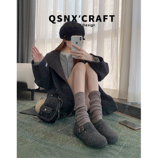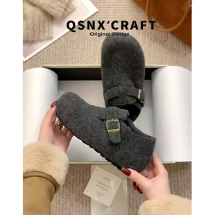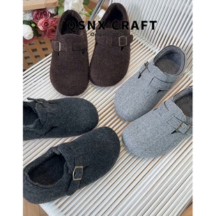 小个子毛毛鞋 女2025秋冬全包厚底单鞋 子 加绒内增高勃肯鞋 真皮版