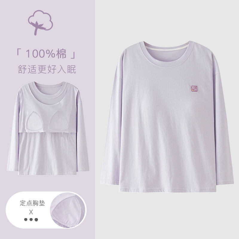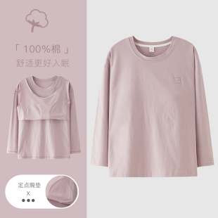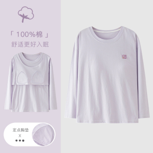 家居服 可外穿超软大码 100%纯棉带胸垫睡衣女上衣单件长袖 春秋季