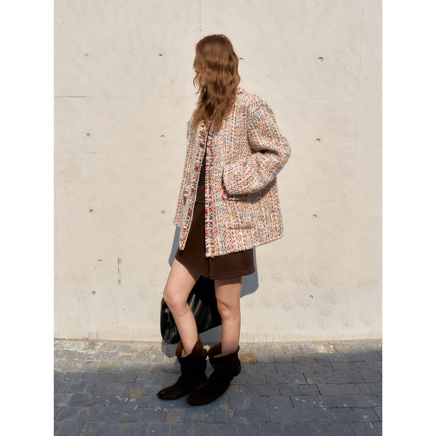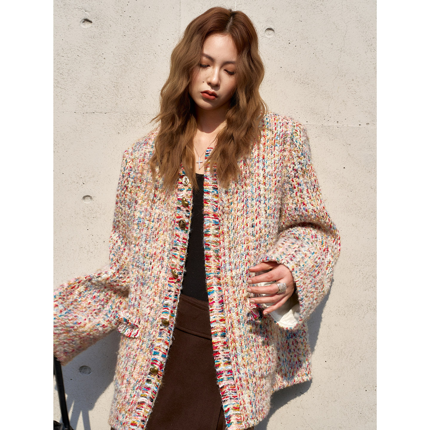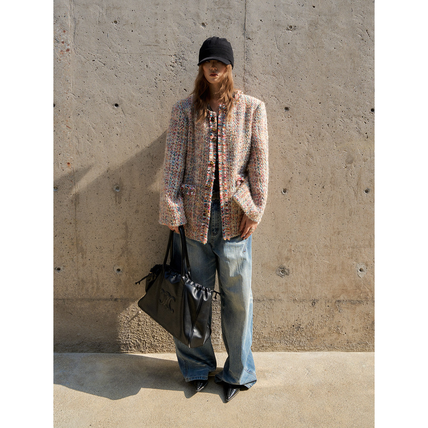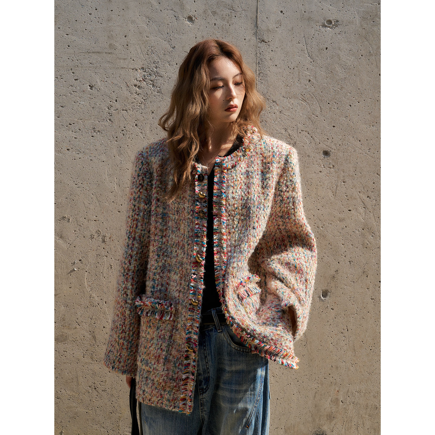 洛边 小香风彩色粗花呢圆领流苏边毛呢外套女宽松原创 杜塞画廊