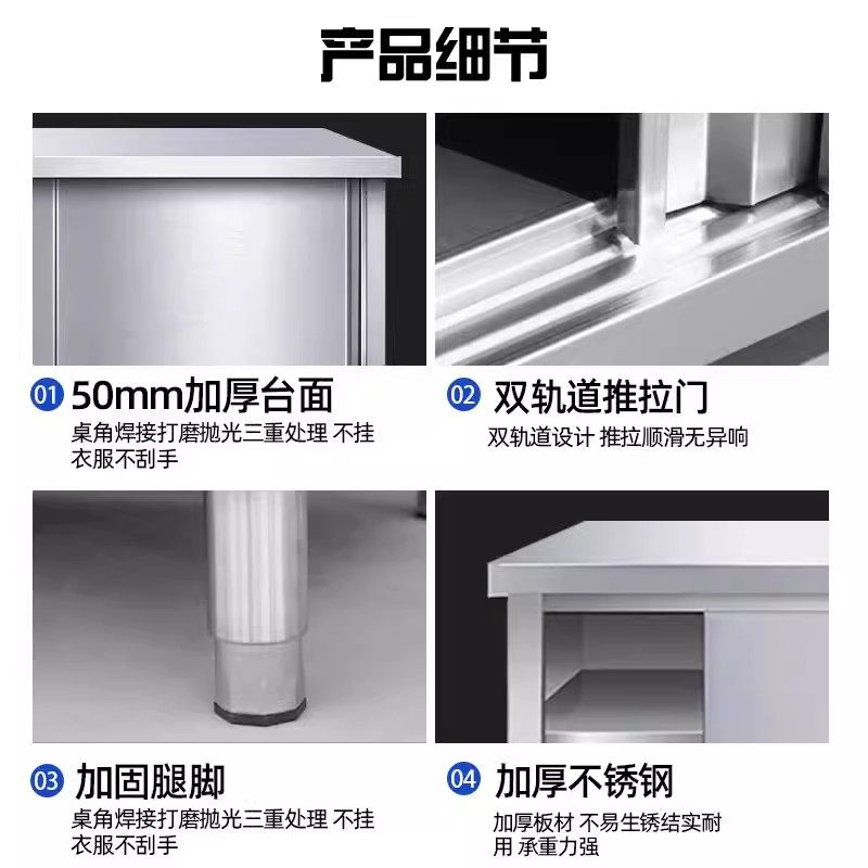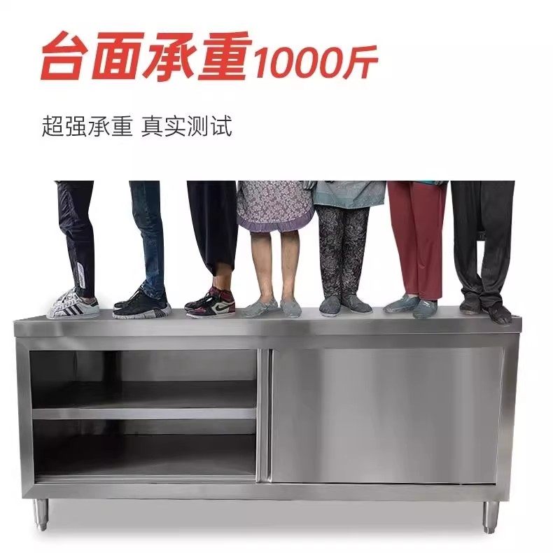 不锈钢工作台厨房操作台面储物柜切菜桌子带拉门案板商用专用烘焙
