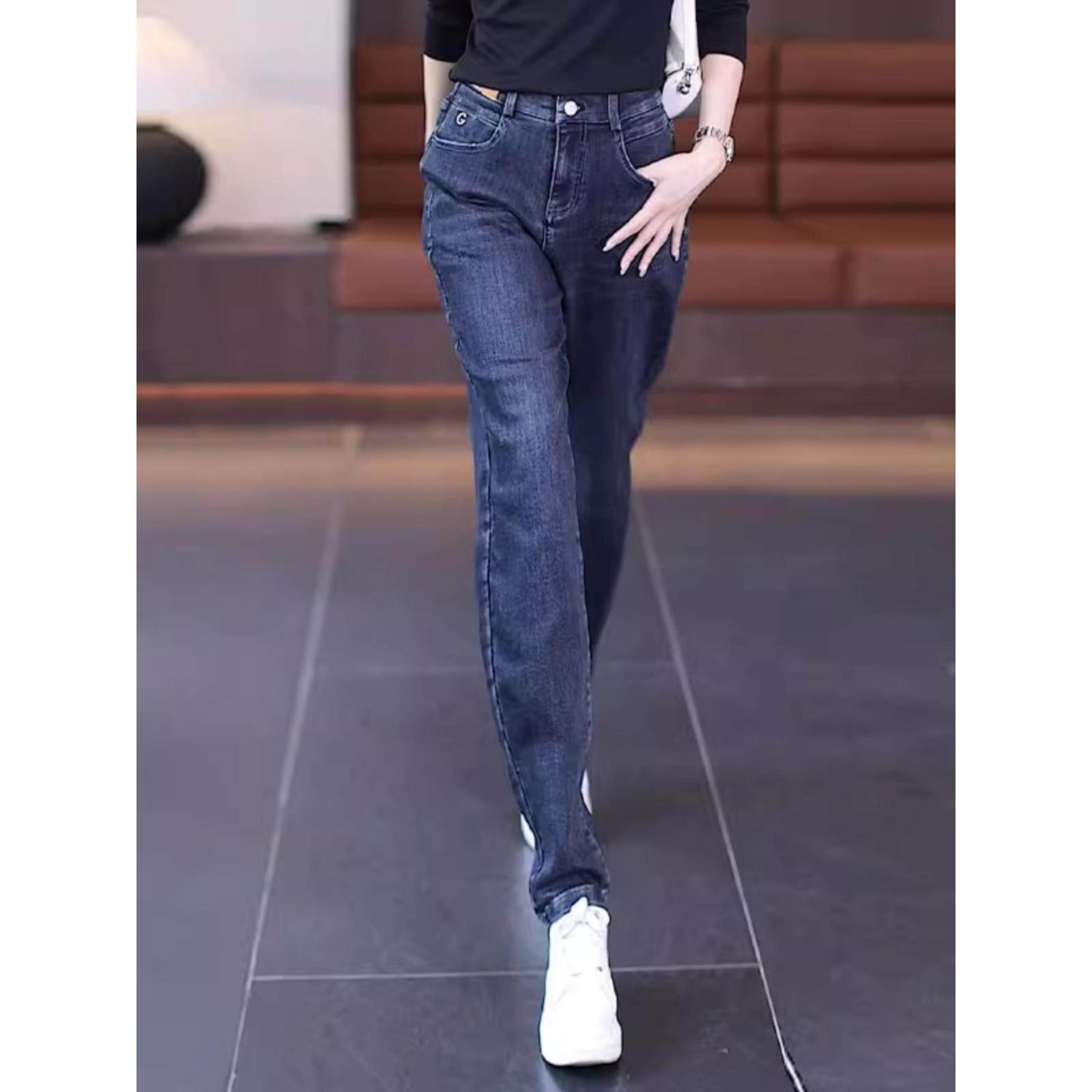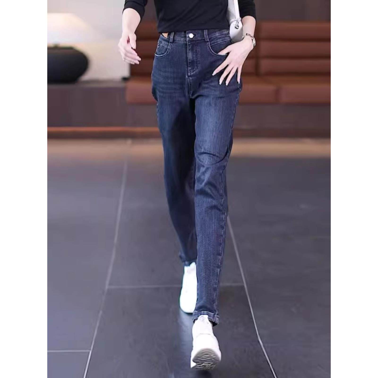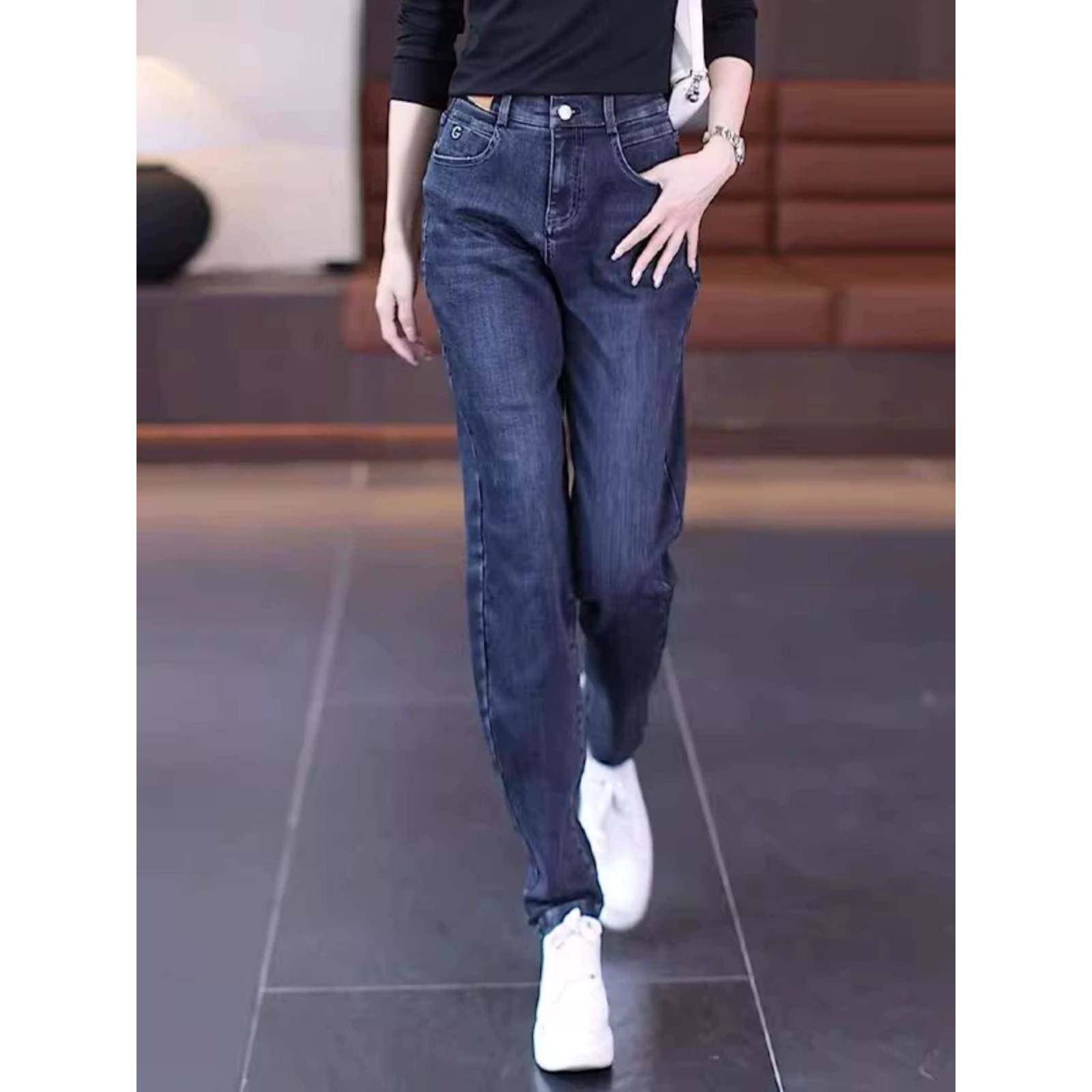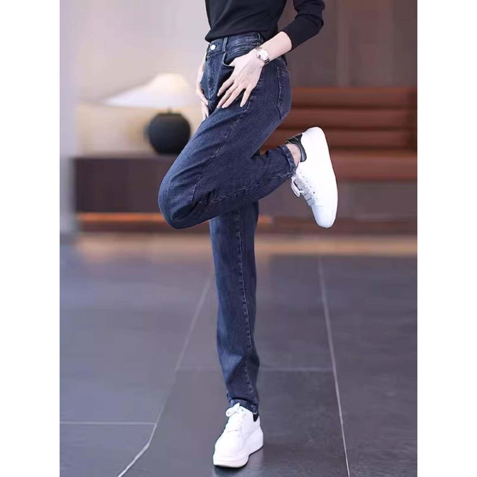 韩版 2025年新款 裤 子小脚裤 高腰牛仔哈伦裤 加厚直筒老爹裤 女秋冬季