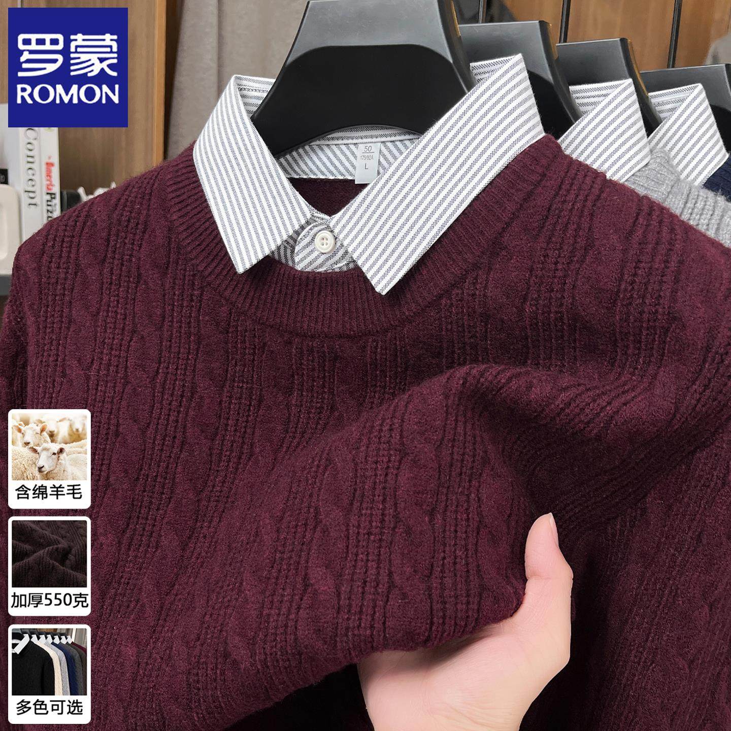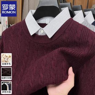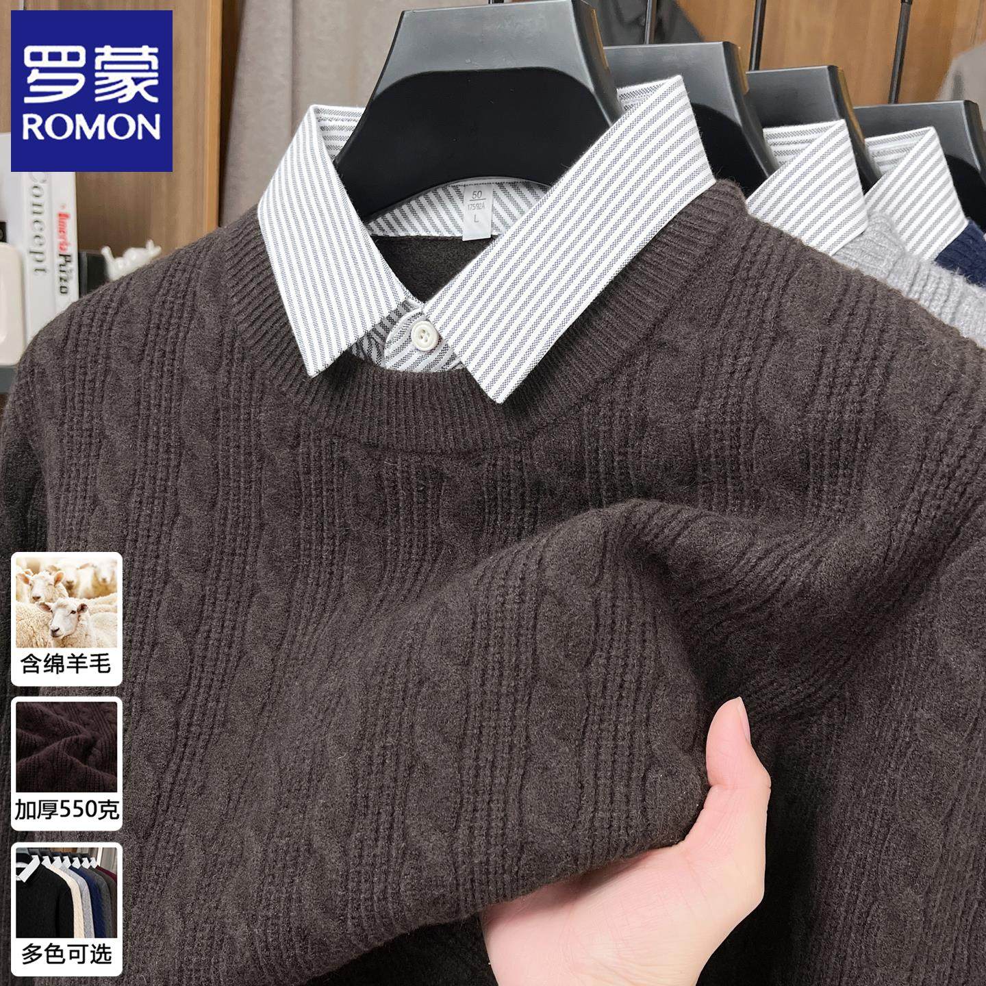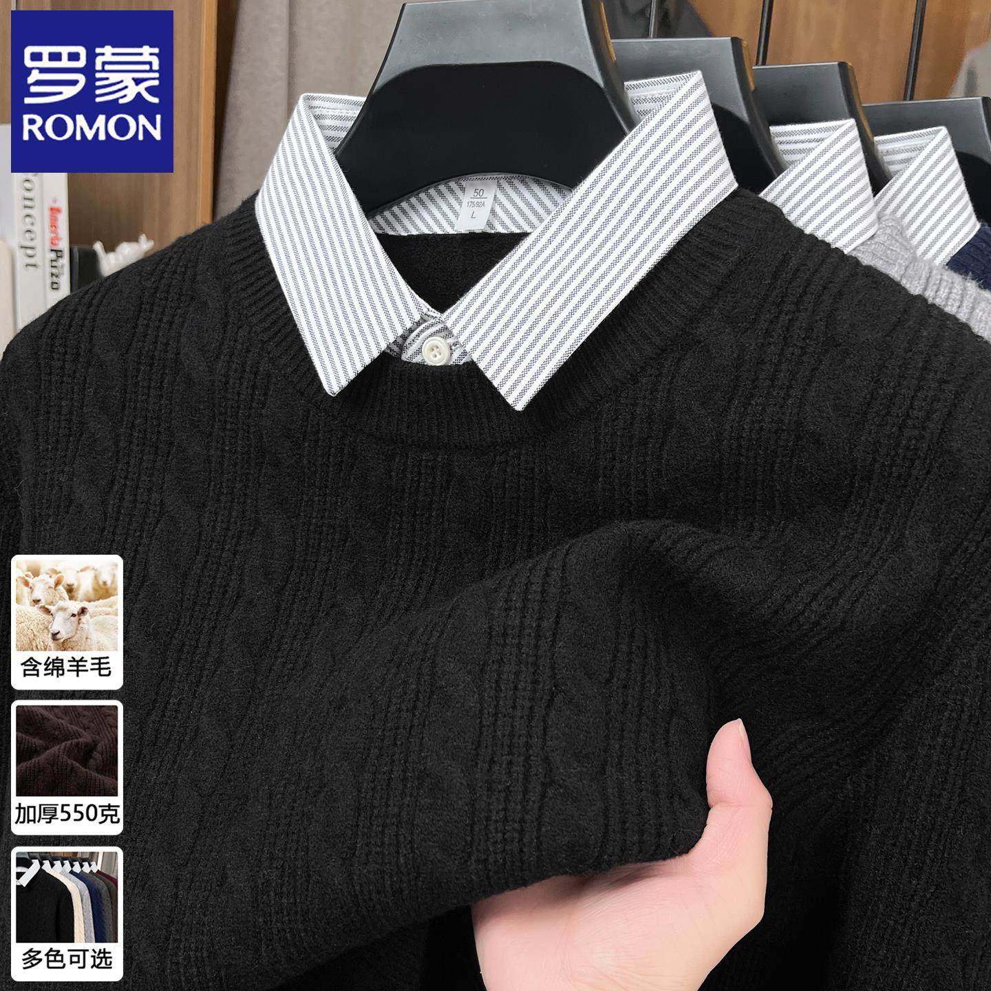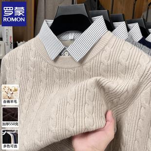 领上衣服加厚保暖针织打底衫 罗蒙假两件毛衣男士 衬衫 新款 男 秋冬季