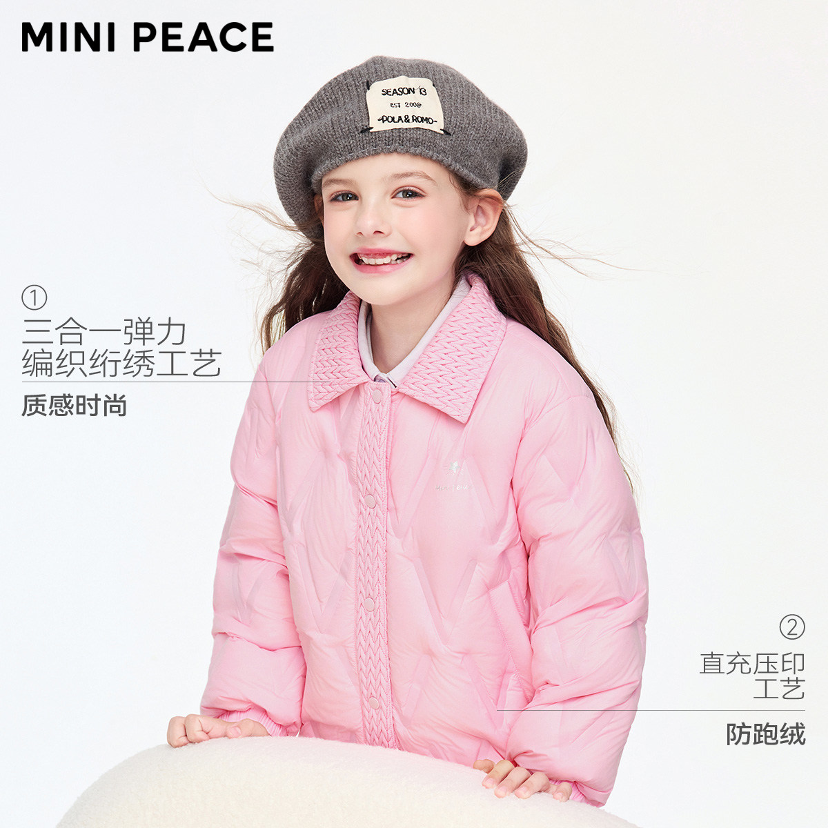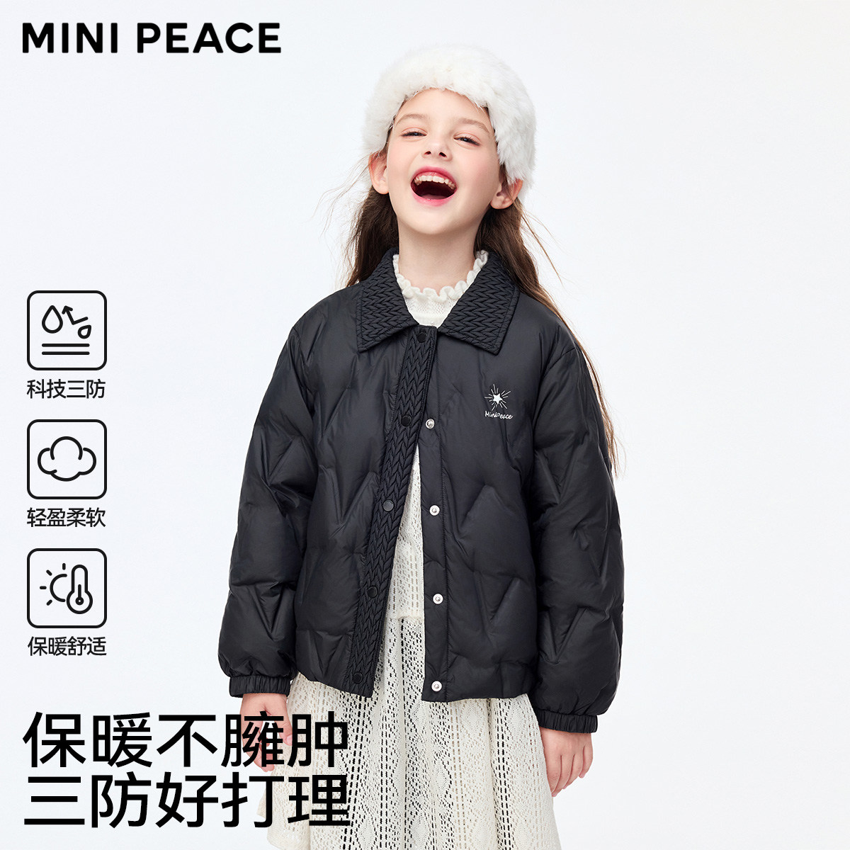 MINIPEACE太平鸟童装 洋气外套 女童轻薄羽绒服压印三防25秋冬新款