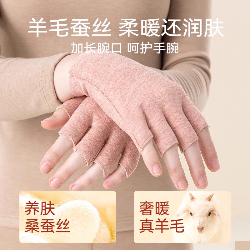 半指手套学生写字专用德绒发热防寒保暖骑车触屏打字露指隐形手套