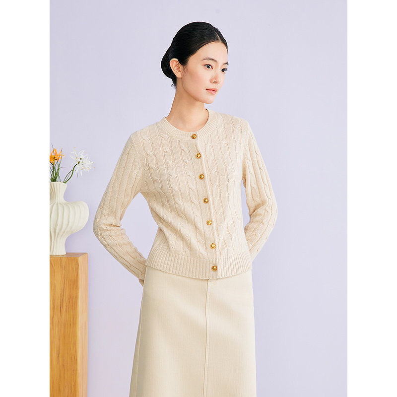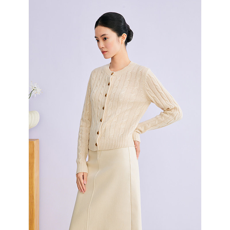 绞花肌理阿拉善山羊绒混纺针织开衫 时尚 新款 YINER音儿2026春季