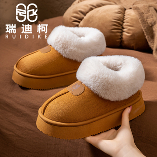 新款 2025冬季 室内防滑保暖加绒舒适厚底毛绒包头拖 男款 森马棉拖鞋
