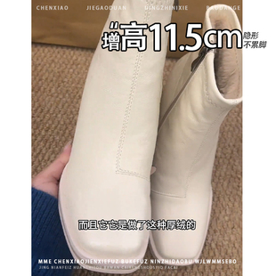 侧拉链短筒靴女 新款 内增高11.5CM 不累脚加绒粗跟靴子2025冬季