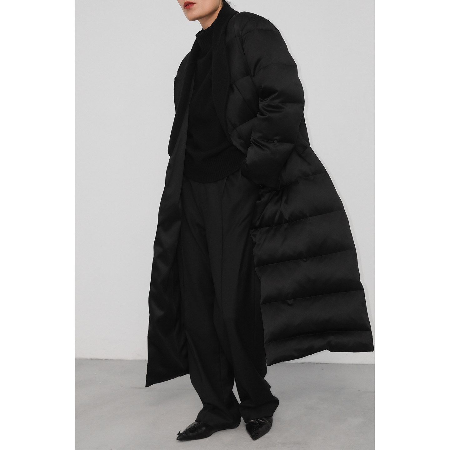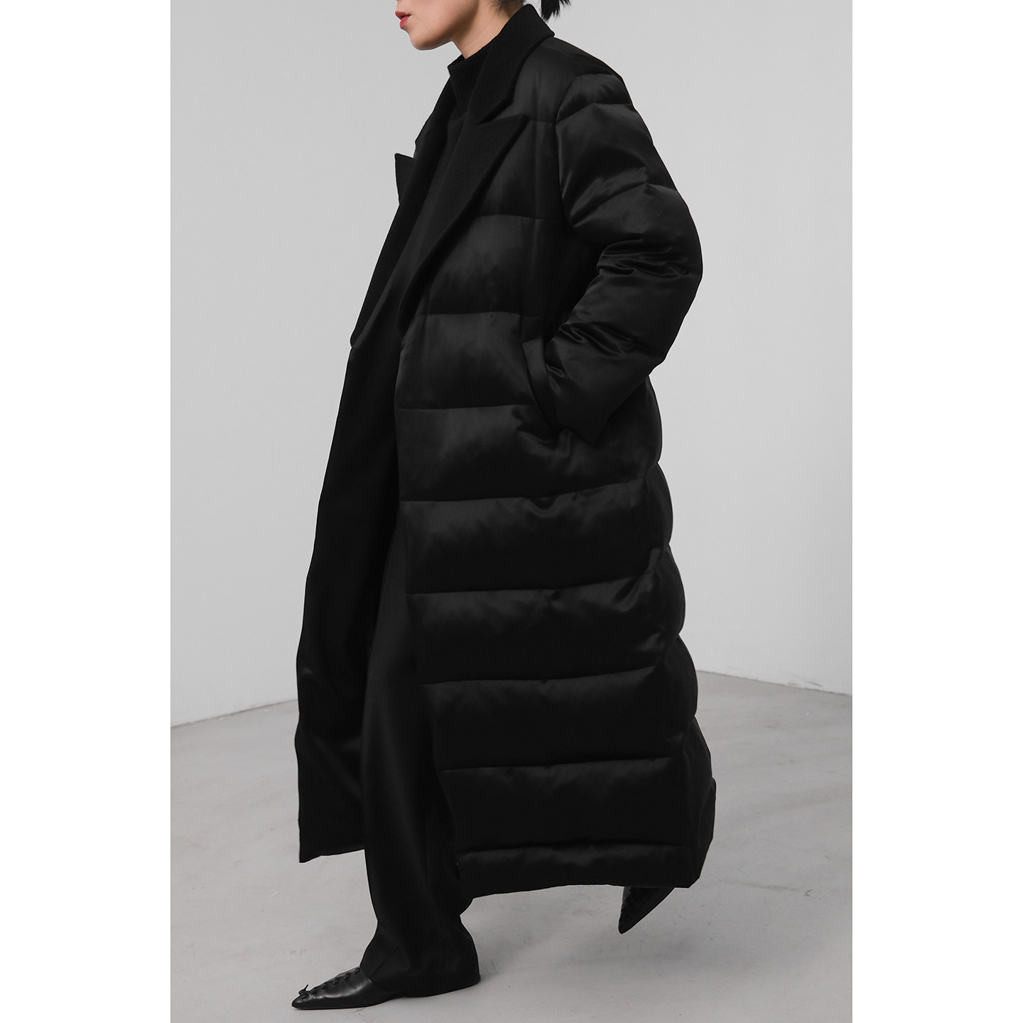 JUZININE原创设计重磅真丝桑蚕丝95白鹅绒长款 加厚充绒大衣