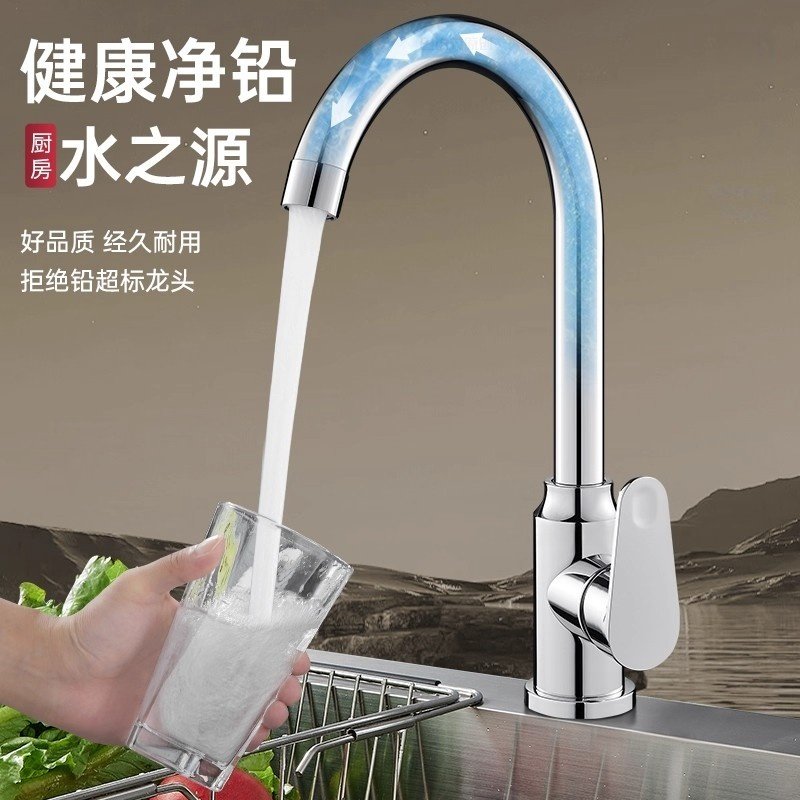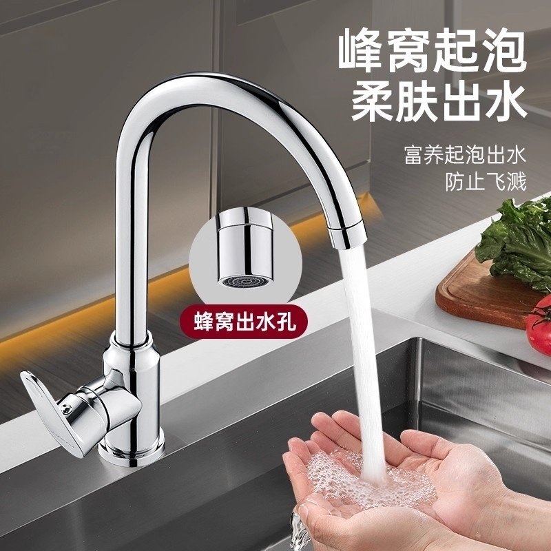 单冷款 厨房洗菜盆水龙头全铜洗碗池水槽专用洗手池防溅水冷热单孔