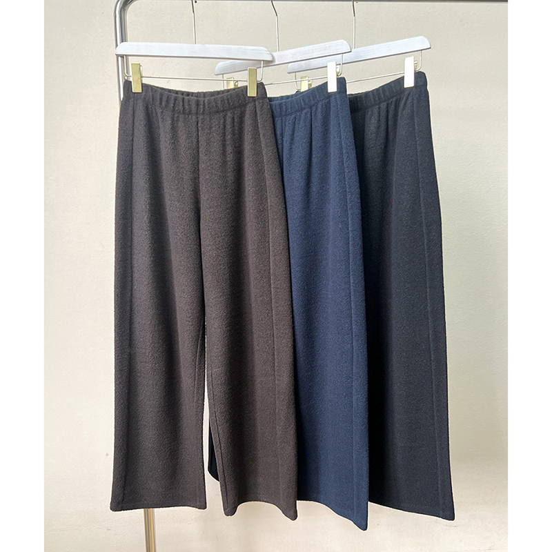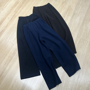 抽绳松紧腰直筒阔腿休闲裤 松软轻盈 女 定织密织羊毛 日系风