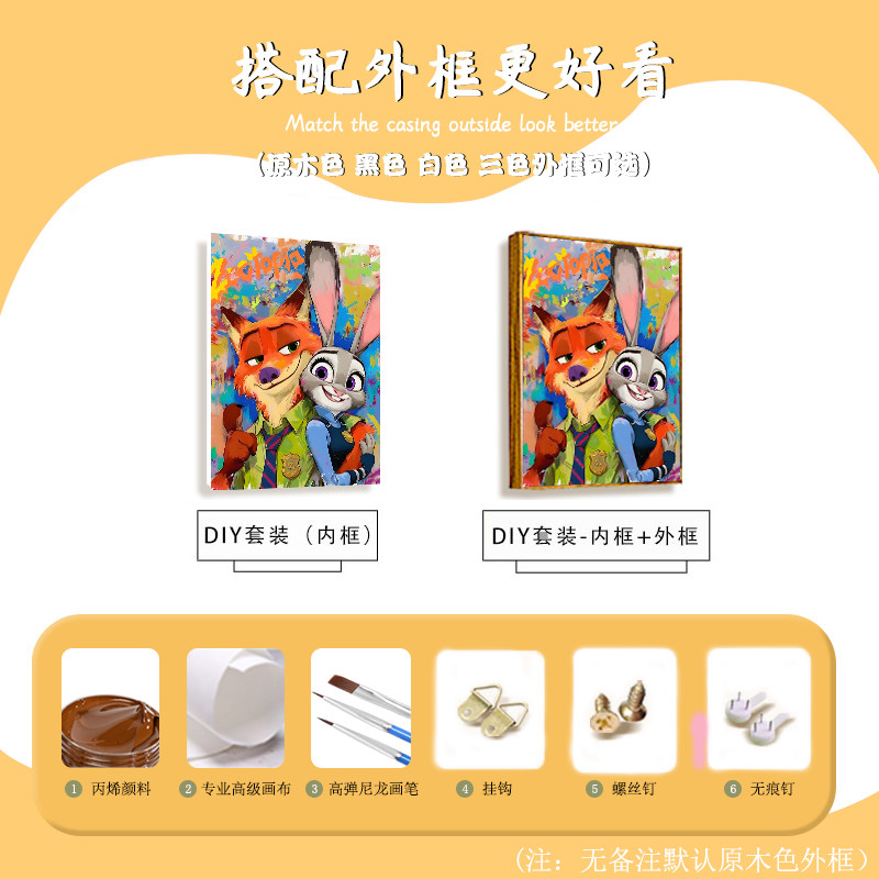 疯狂动物城2DIY数字油画手工绘填充涂色卡通朱迪尼克高颜值装 饰画