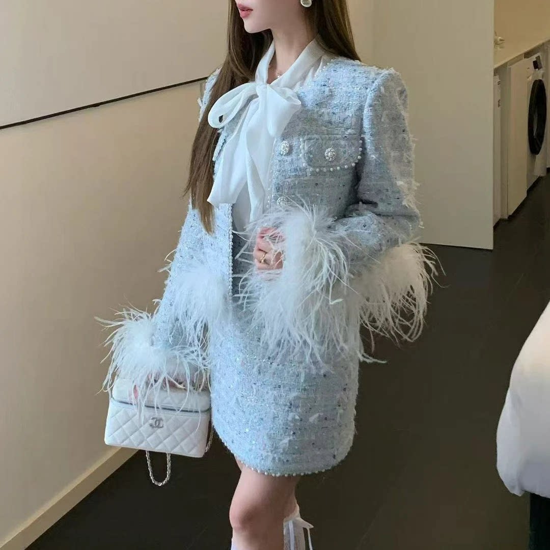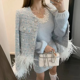 公主家6818气质小香风粗花呢夹棉外套 高腰短裙半身裙两件套装