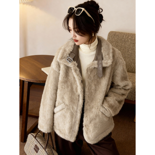 外套气质短款 大毛毛领加厚针织开衫 上衣 新款 酒午优雅复古2025冬季