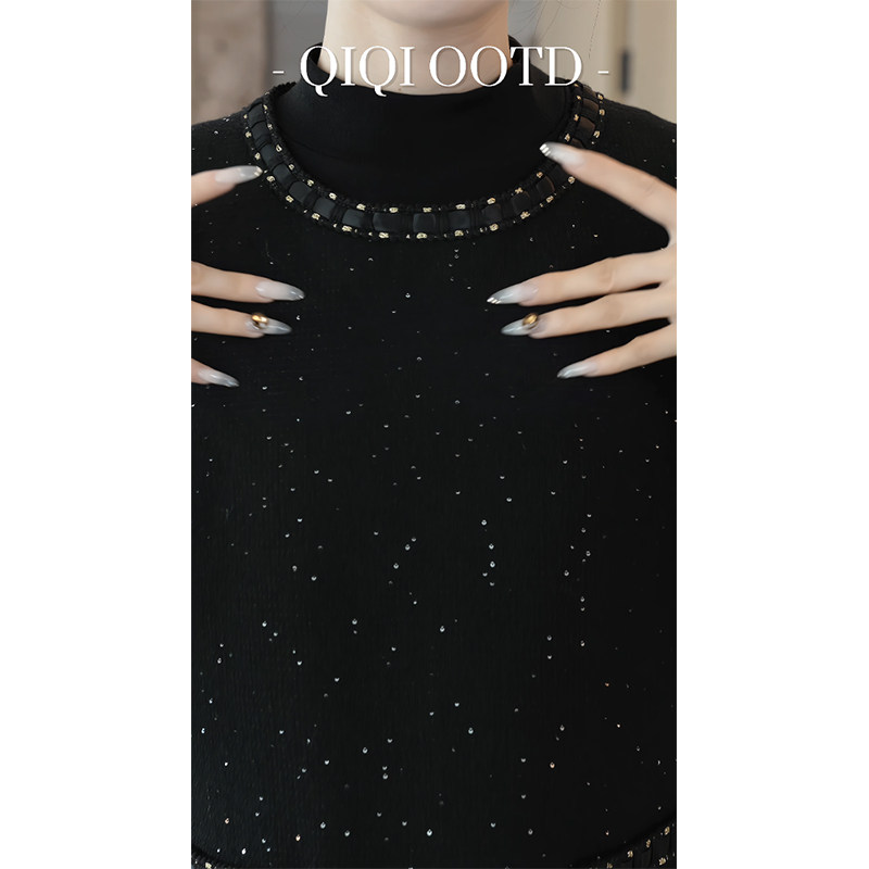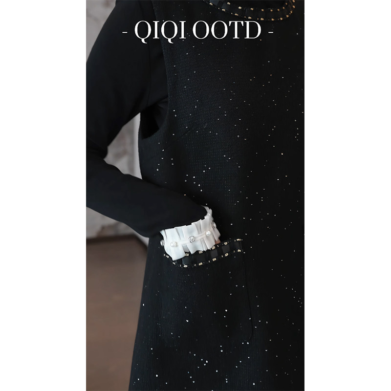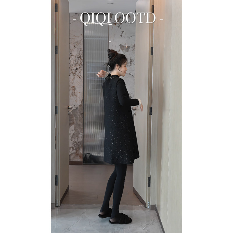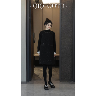 长款 极简收腰中领内搭打底小黑裙女冬季 连衣裙 加绒经典 郭九九呢