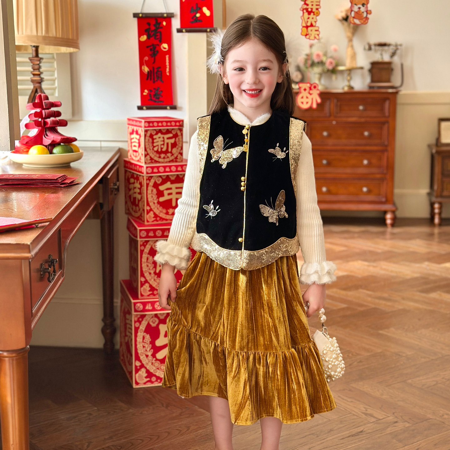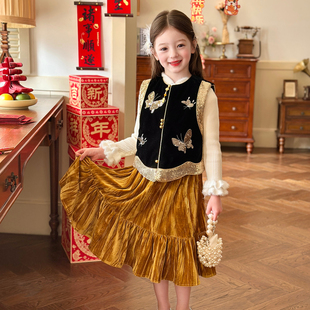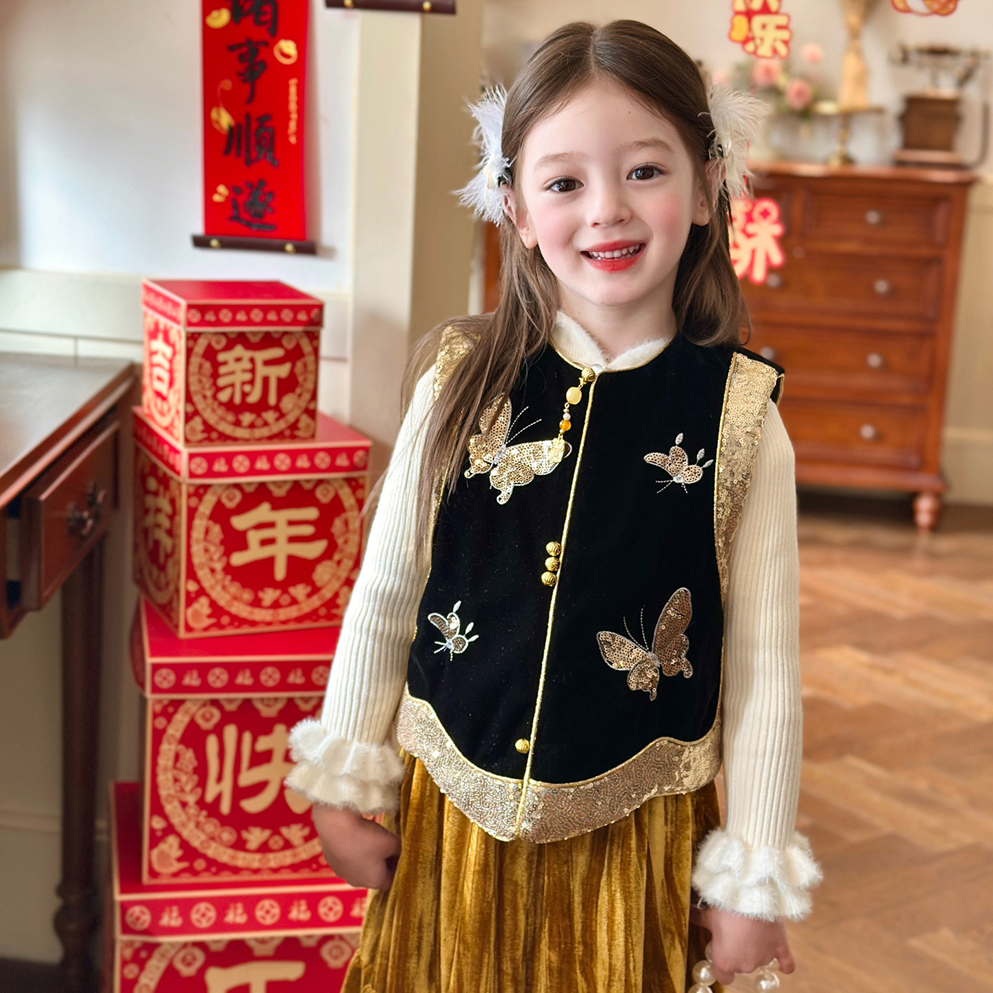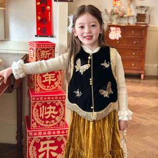 儿童国风新年背心上衣 夹棉马甲2025冬季 栀了成长记童装 女童新中式