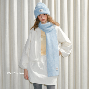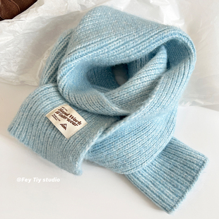 秋冬季 软糯亲肤加厚针织围巾女 保暖百搭围脖学生 baby蓝 feytiy