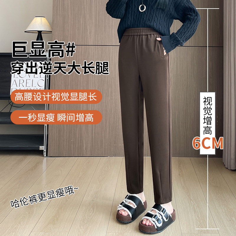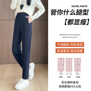 子女2025春秋新款 裤 高腰垂感哈伦裤 加绒西装 女 冬季 黑色小脚烟管裤