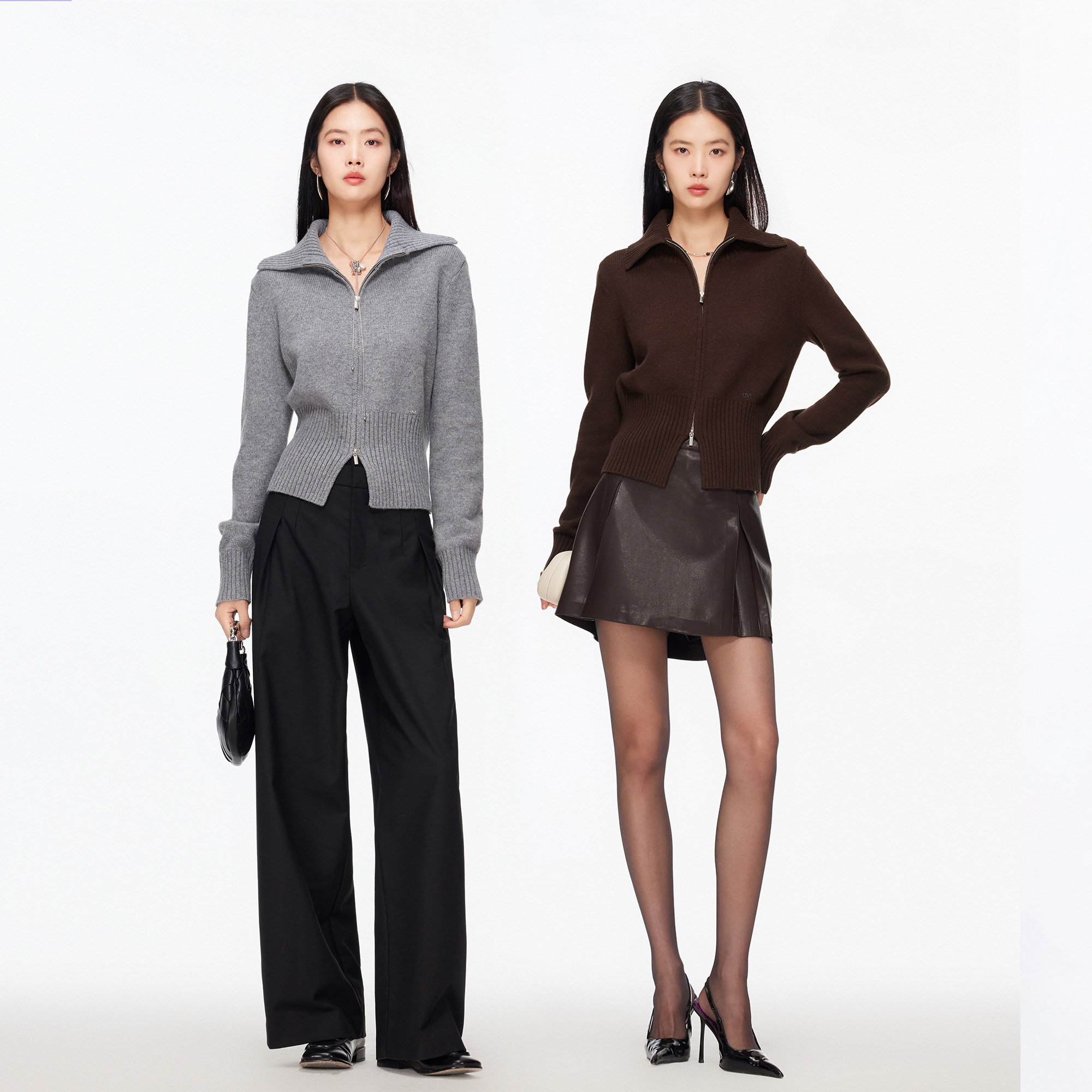 Vero 含绵羊毛双拉链纯色高级上衣 Moda奥莱毛衣女2026春夏新款