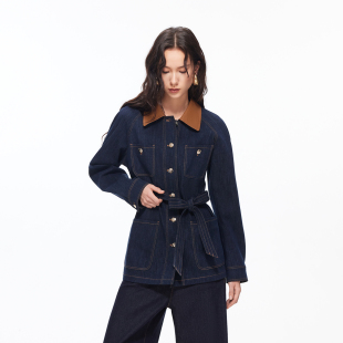 含棉莱赛尔PU领牛仔外套326157003 新款 Vero Moda风衣女2026春季