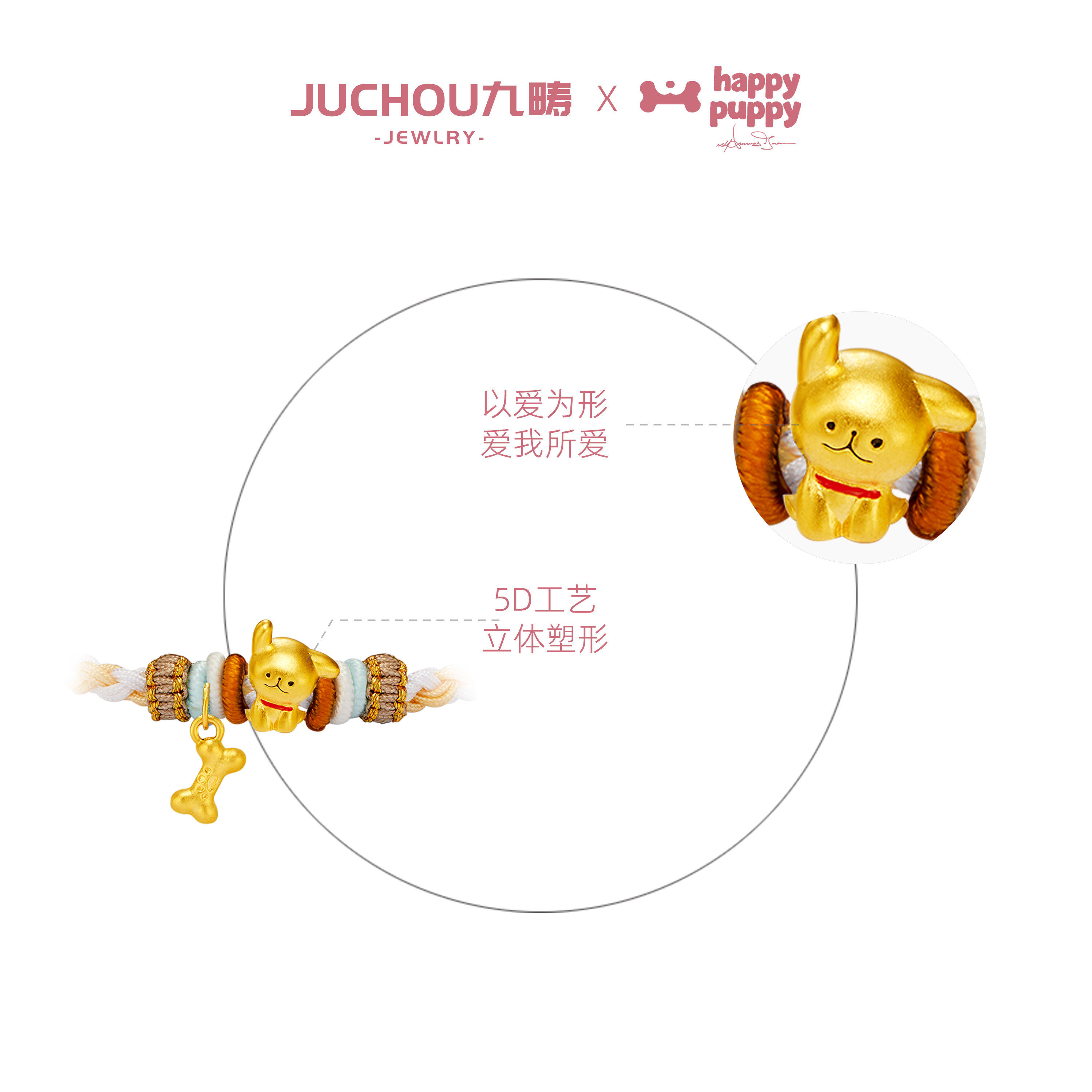 周六福黄金手绳女足金定价5d硬金礼物手链十二生肖本命年生肖蛇马