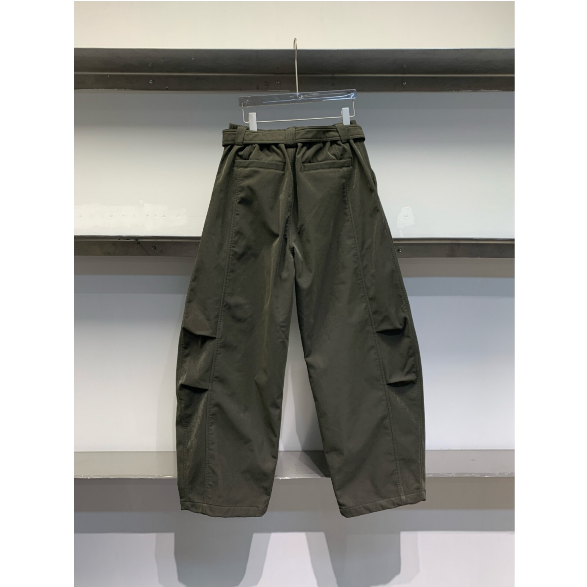设计师款 25冬季 潮牌松紧腰配腰带阔腿立体裁剪拖地弯刀裤 独处