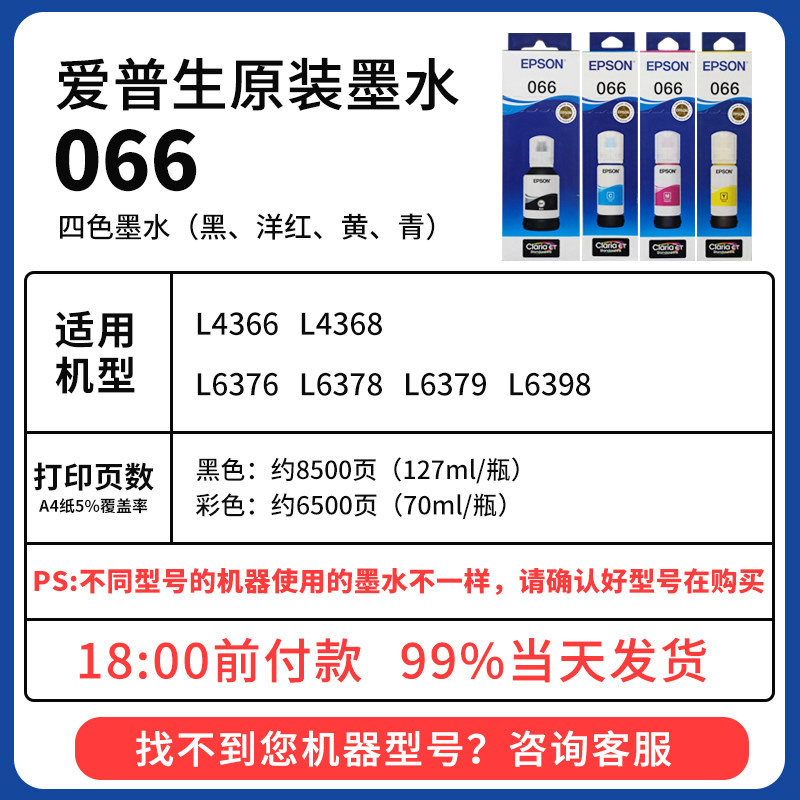 L3256 喷墨打印 L3115 墨水适用L3251 L3253 3116 L326X L3258 3119 爱普生Epson004原装 L1119 3118 L3108