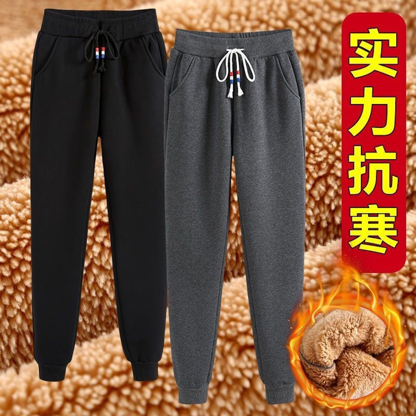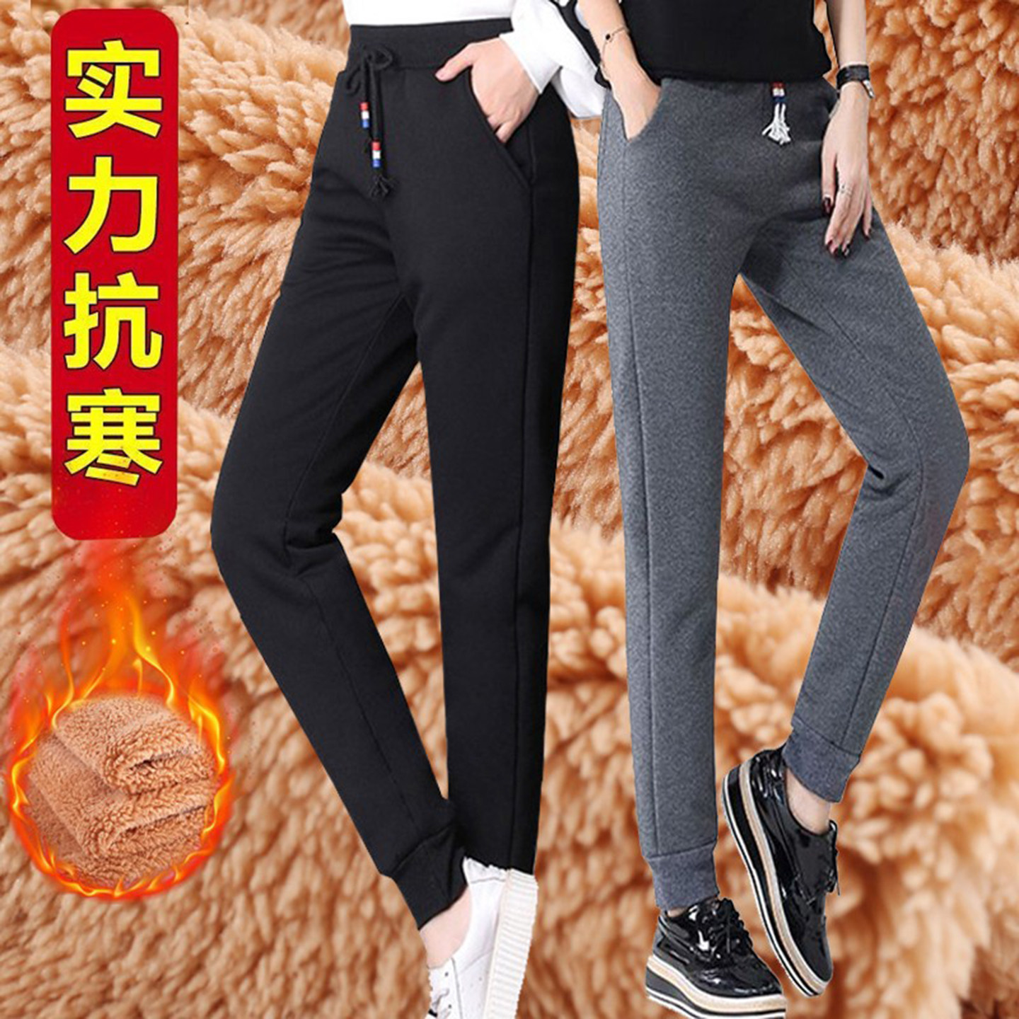 羊羔绒大码 女加绒加厚休闲裤 卫裤 保暖裤 子女 冬季 外穿棉裤 运动裤