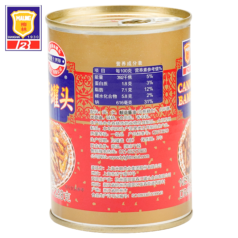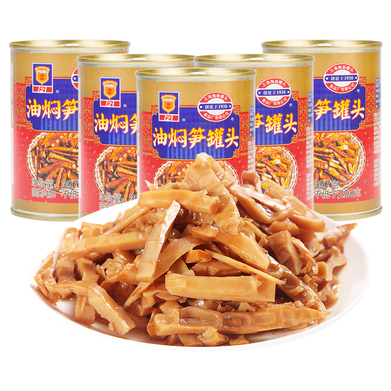上海梅林油焖笋397g 5罐爽口下饭菜竹笋干笋尖零食即食鲜笋罐头