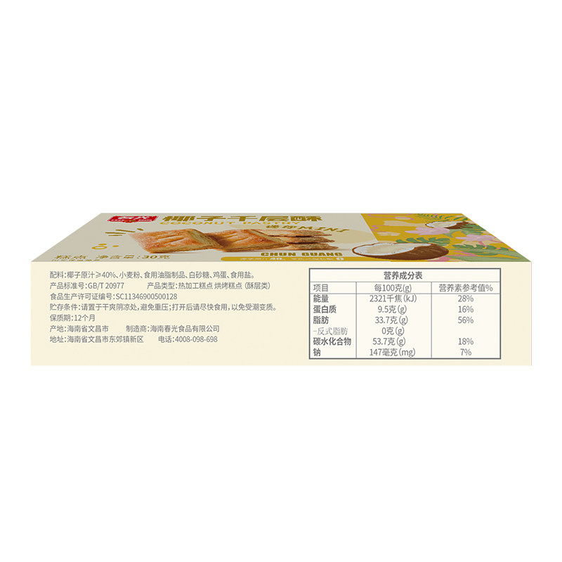 酥脆饼干 春光食品 椰子千层酥30g 休闲零食 零食小吃 海南特产