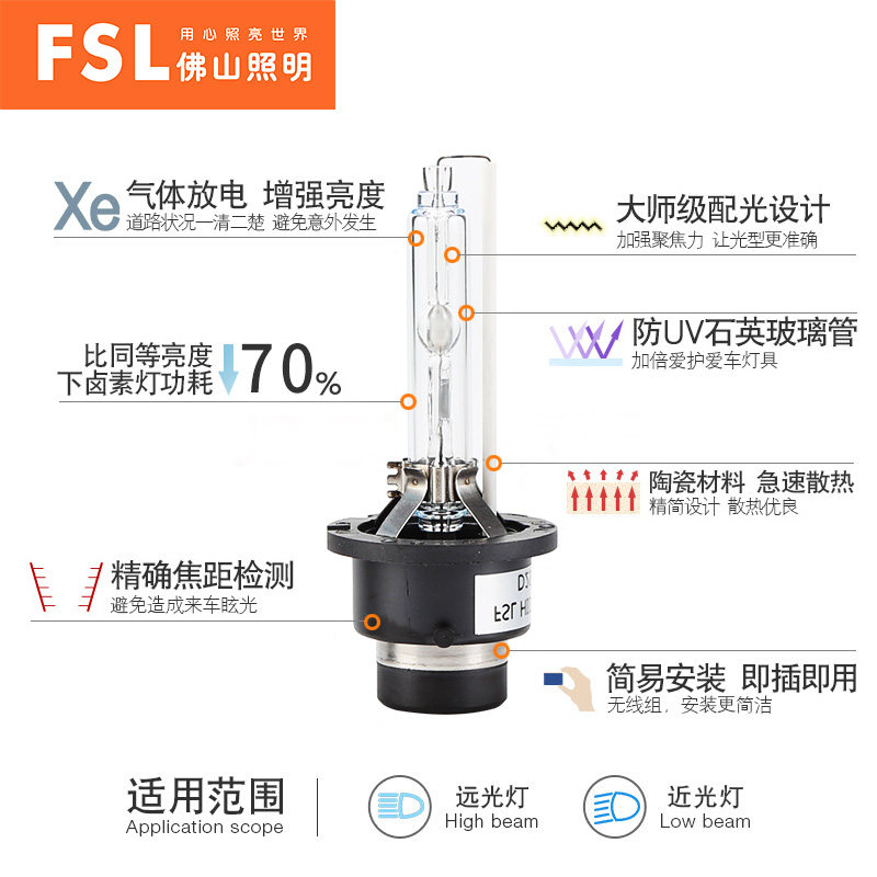 55W高亮度D2H氙气灯泡HID远近光大灯海5GTR透镜Q5专用疝氙气灯泡