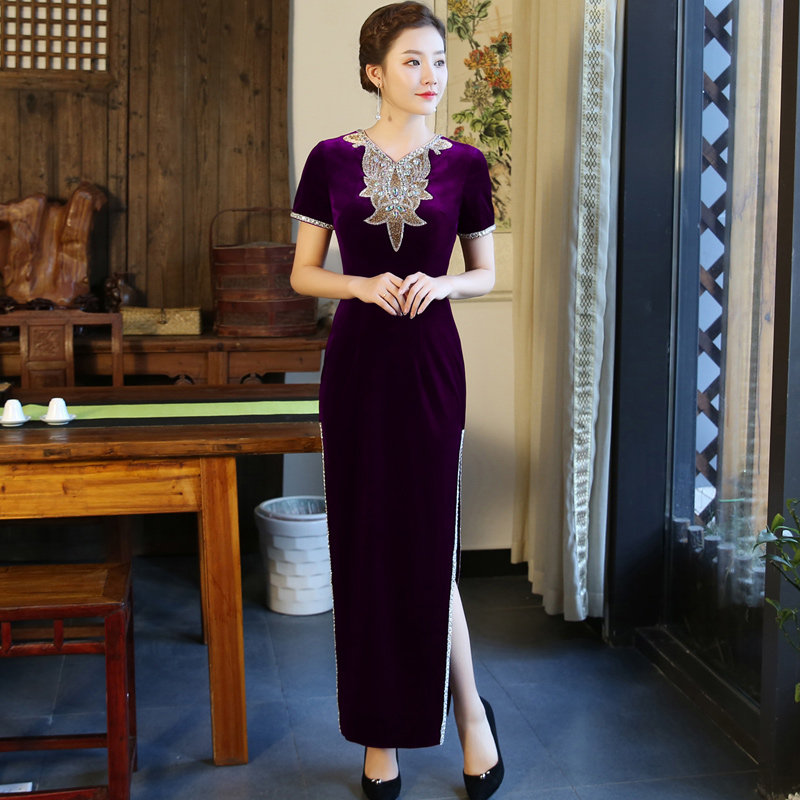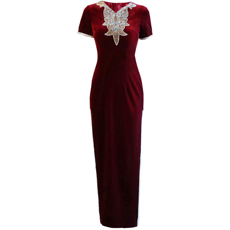 改良低领年轻妈妈装 妈妈旗袍春季 高贵时尚 女 显瘦婚宴礼服裙 新款