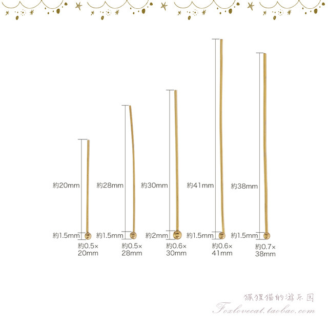 圆头针KIWA手工配件辅料饰品手作材料日本贵和制作所铜镀金色银色
