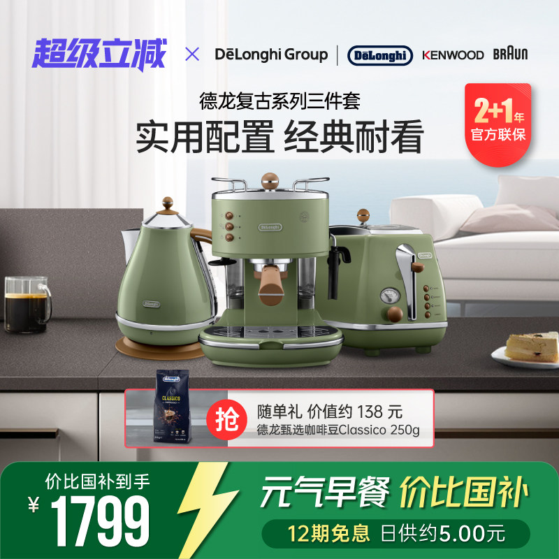 礼物 小型泵压磨豆机套装 delonghi德龙 EM450.M半自动咖啡机意式