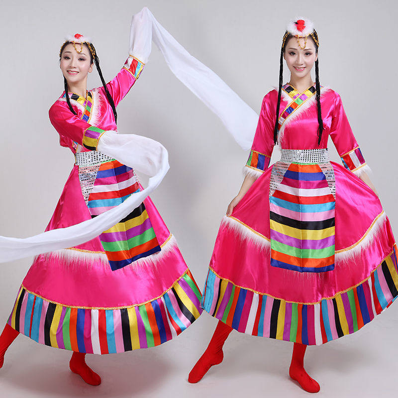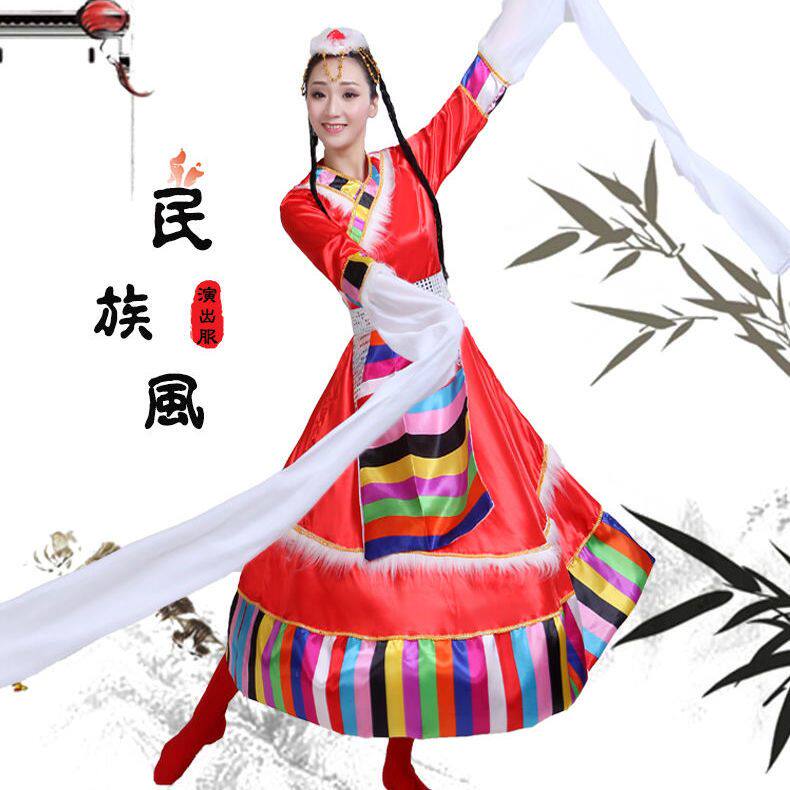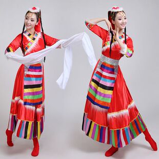 衣服少数民族服饰广场舞套装 女新款 成人 舞蹈演出服装 藏族可拆水袖