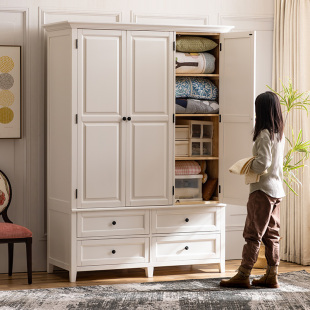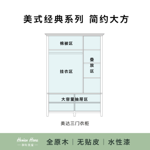 和年美家美式 衣柜挂衣柜平开门两门三门组合实木衣柜 卧室实木组装