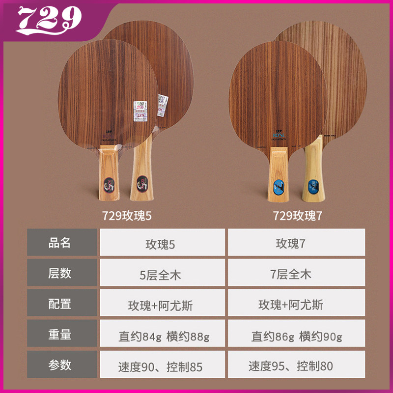 正品 729乒乓球底板5层玫瑰5乒乓板玫瑰7进攻型7层全木直板横板
