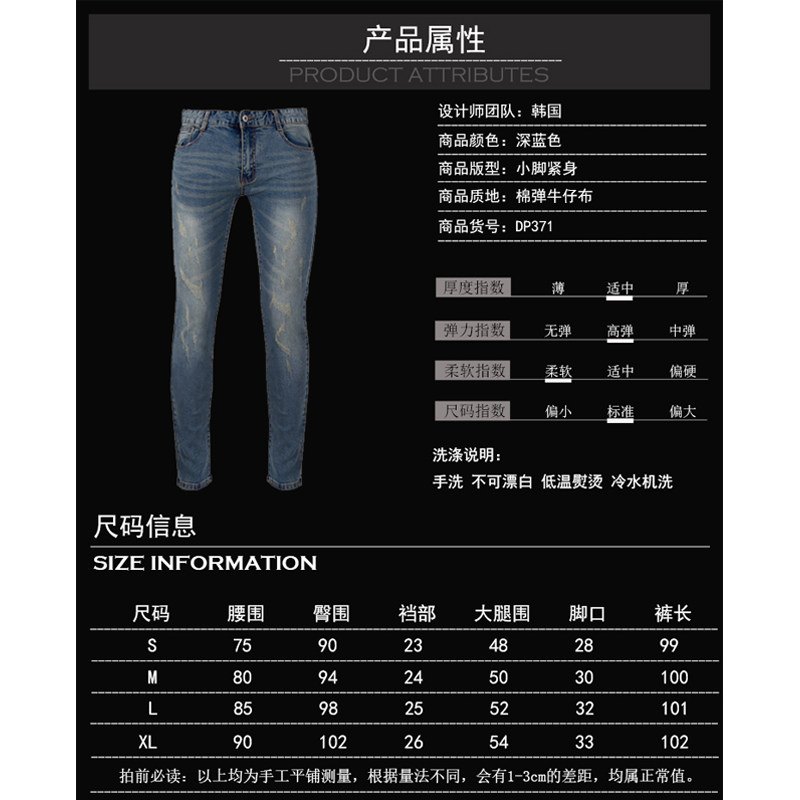 修身 春秋牛仔裤 潮流新款 时尚 复古弹力低腰小脚铅笔百搭休闲 男韩版